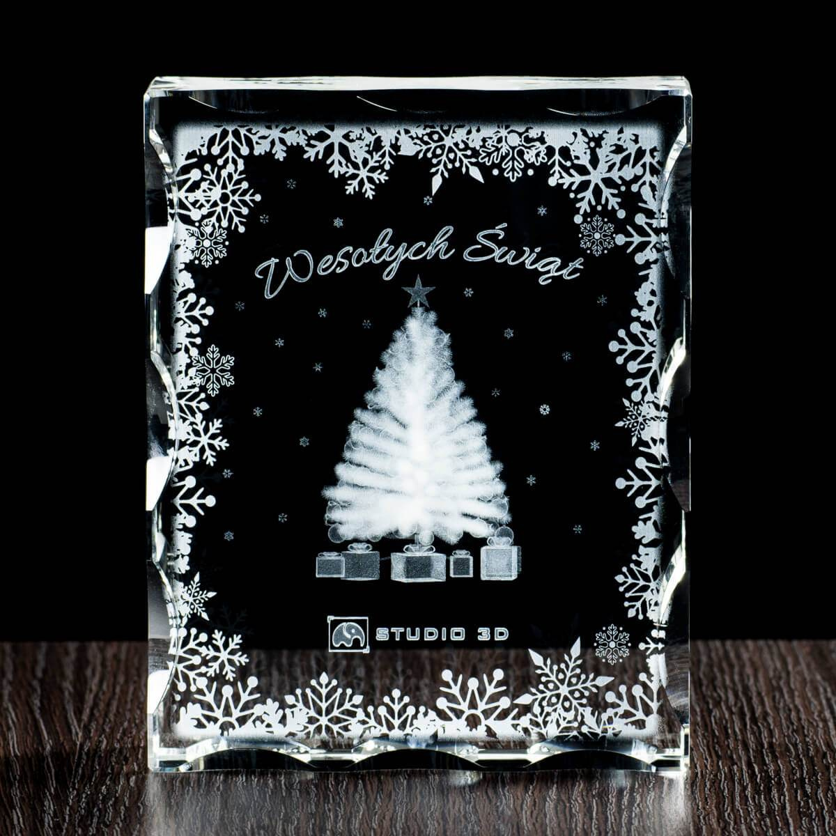 - Prezent świąteczny dla bliskich jak również pomysł na świąteczny gift firmowy. Wyjątkowa kryształowa statuetka, w której wnętrzu znajduje się okolicznościowy, świąteczny grawer 3D.