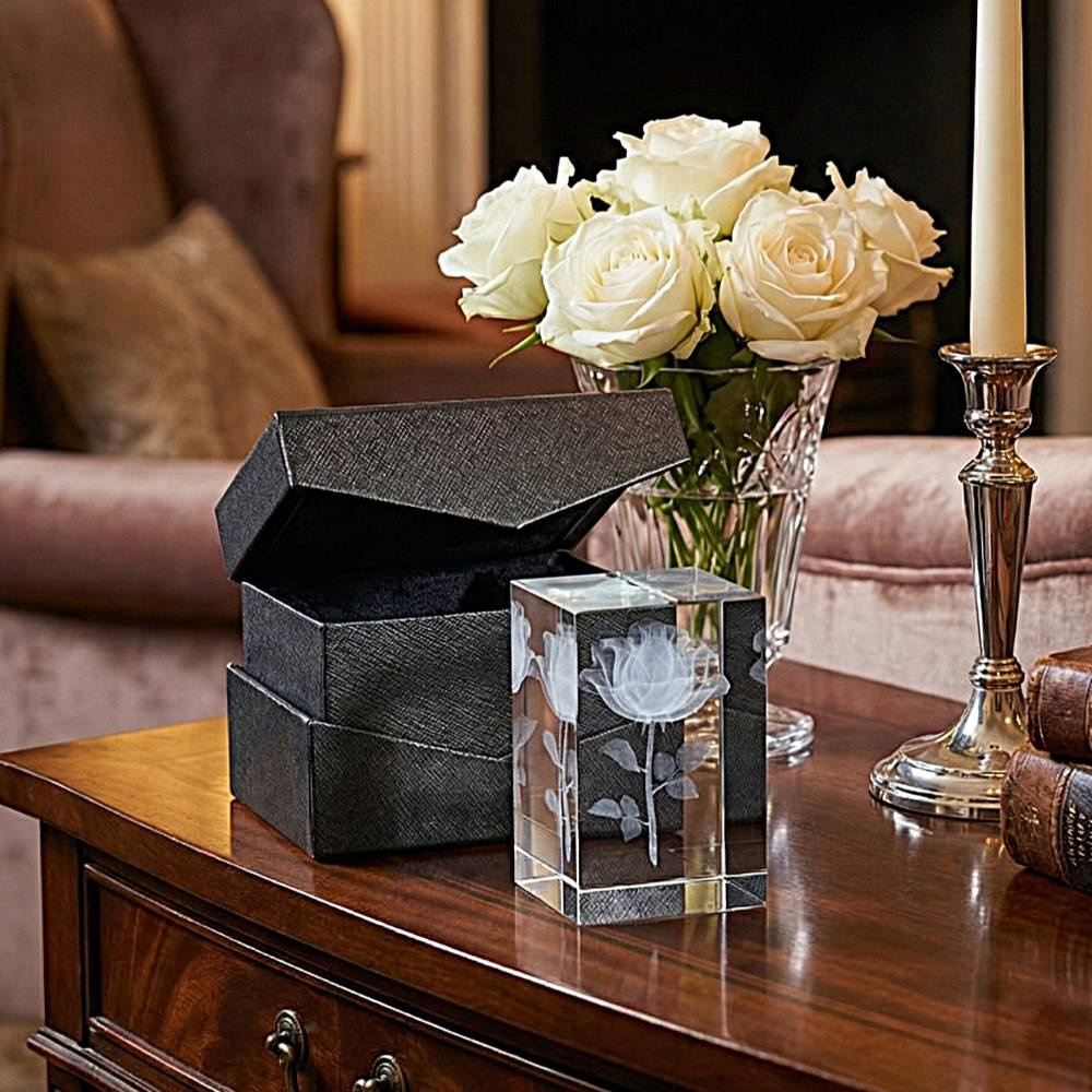 Zatopiona w perfekcyjnym krysztale trójwymiarowa róża 3D, stanie się osobliwym prezentem, w którym zostaną zawarte uczucia, podziękowania i życzenia. Przepiękna szklana statuetka będzie odzwierciedleniem wszystkich szczerych myśli, które nie przeminą wraz z upływem czasu. Profesjonalne, artystyczne grawerowanie w szkle pozwala na umieszczenie własnej dedykacji i spersonalizowanie kryształowego upominku, idealnego z okazji urodzin, jubileuszy czy zaszczytnych okazji.