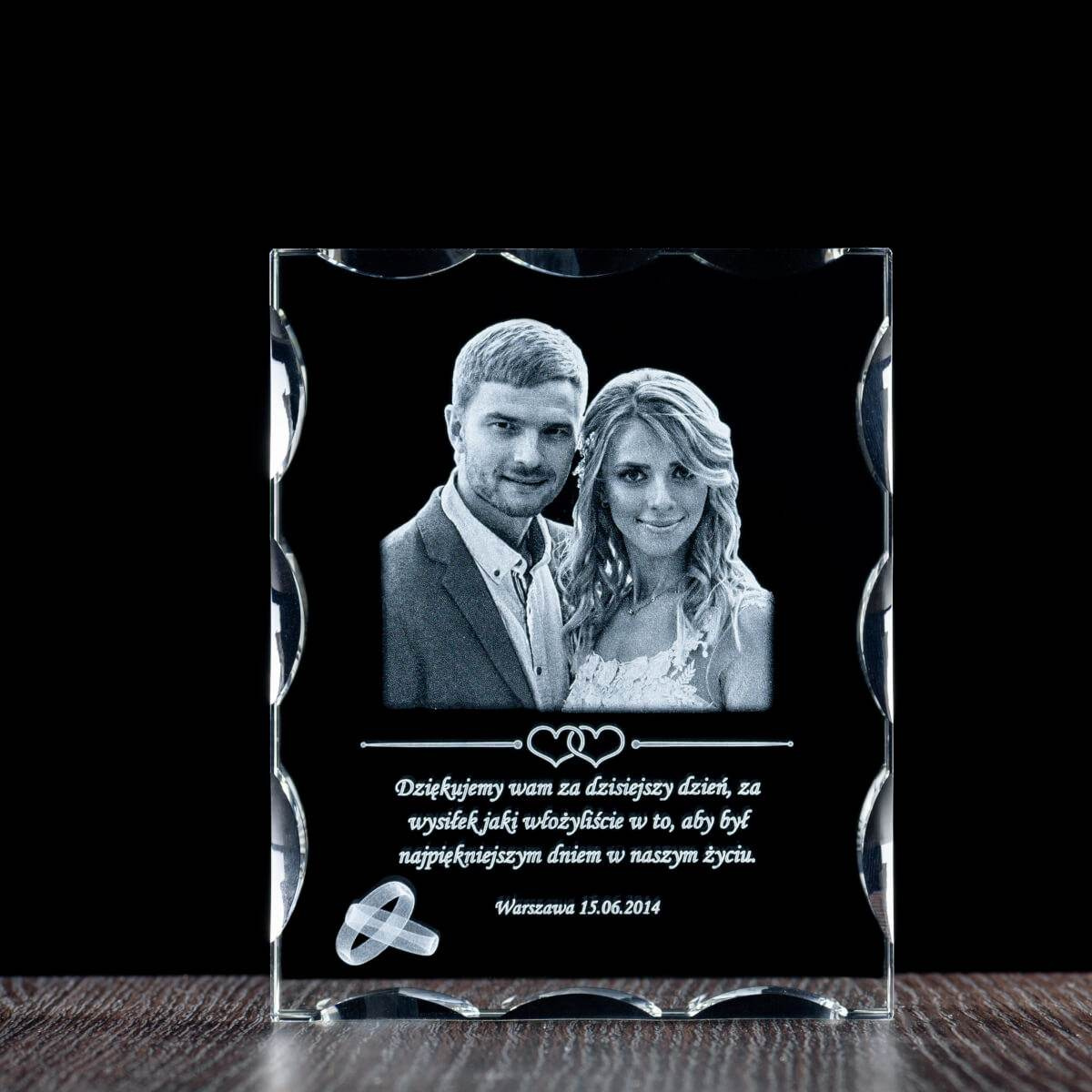 Niespotykany i szalenie intrygujący, a przy tym szlachetny i pełen emocjonalnego przekazu kryształowy prezent dla nowożeńców sprawi, że dzień ślubu nigdy nie przestanie błyszczeć swoim wyjątkowym blaskiem, na którym unosi się prawdziwa miłość. Szlachetny podarunek o wysublimowanym wykończeniu pozwala na personalizację — grawerowanie w krysztale to możliwość zamieszczenia osobistych, płynących prosto z serca życzeń. Perfekcyjnie wygrawerowane zdjęcie 2D uczyni całość szalenie ekspresyjnym prezentem.