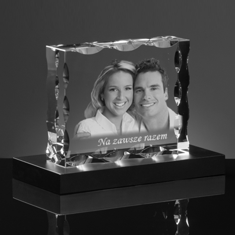 - Zdjęcie wygrawerowane w krysztale na podświetlanej podstawce. Obdaruj nim bliską osobę z okazji ślubu bądź rocznicy ślubu. Z pewnością zrobisz duże wrażenie. Wymyśl indywidualną dedykację, a my przeniesiemy ją do kryształu.