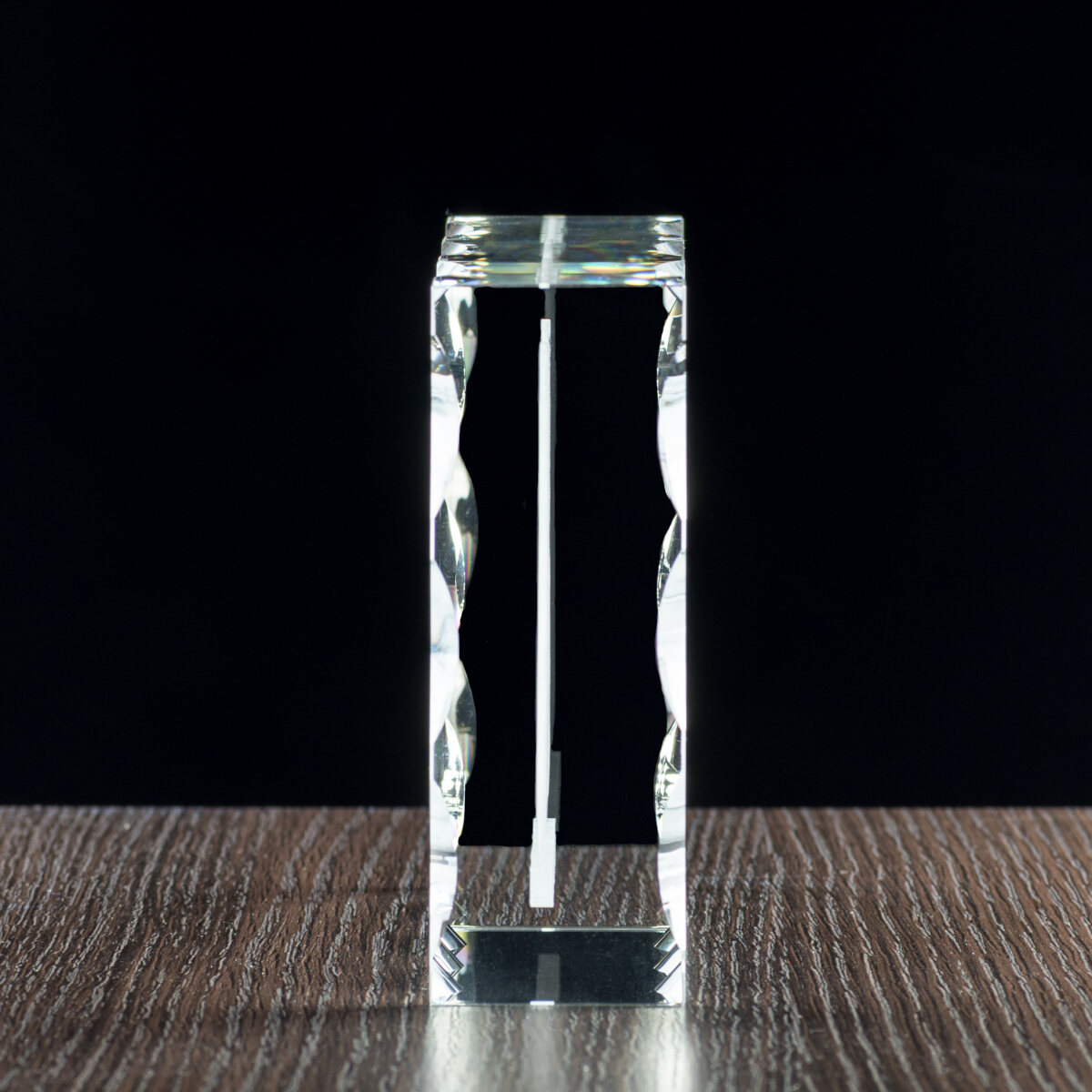 Fotoprezent grawerowany w szkle - zdjęcie 2D w statuetce, podstawka LED