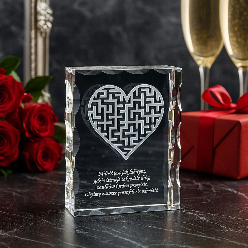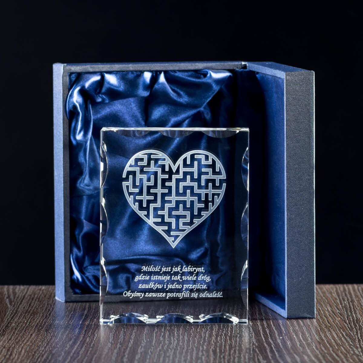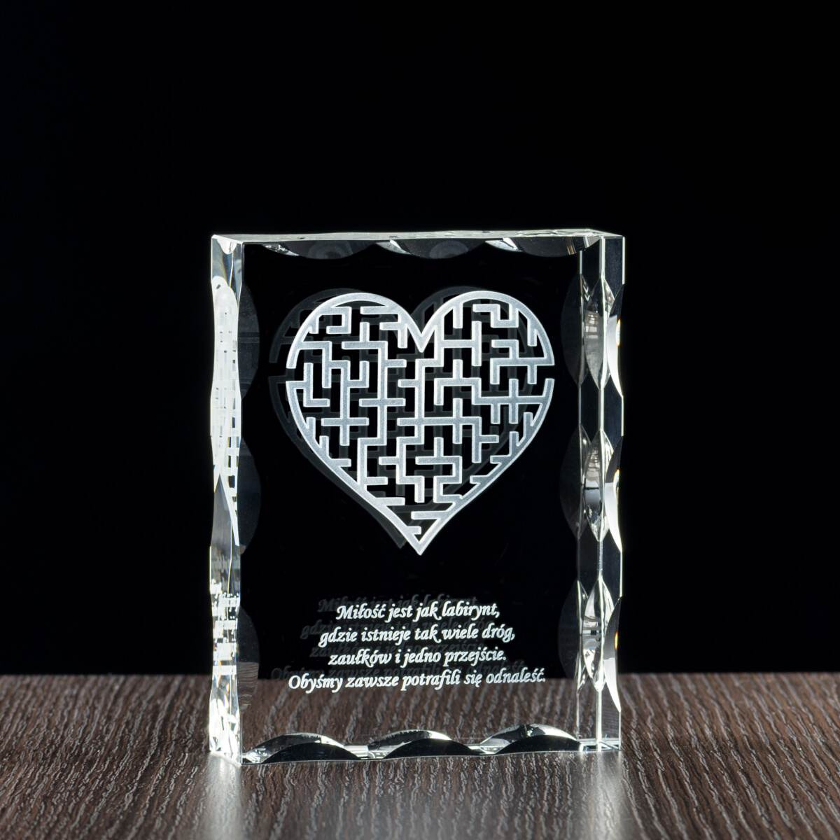 Ozdobny kryształ - Trójwymiarowe serce z labiryntem wraz z miejscem na Twoją dedykację