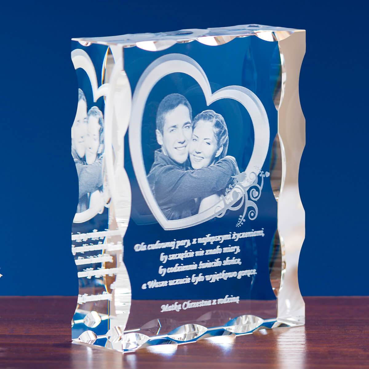 - Prezent na walentynki, fotokryształ z wygrawerowanym sercem, a w nim zdjęcie. Statuetka może być opatrzona indywidualną dedykacją.