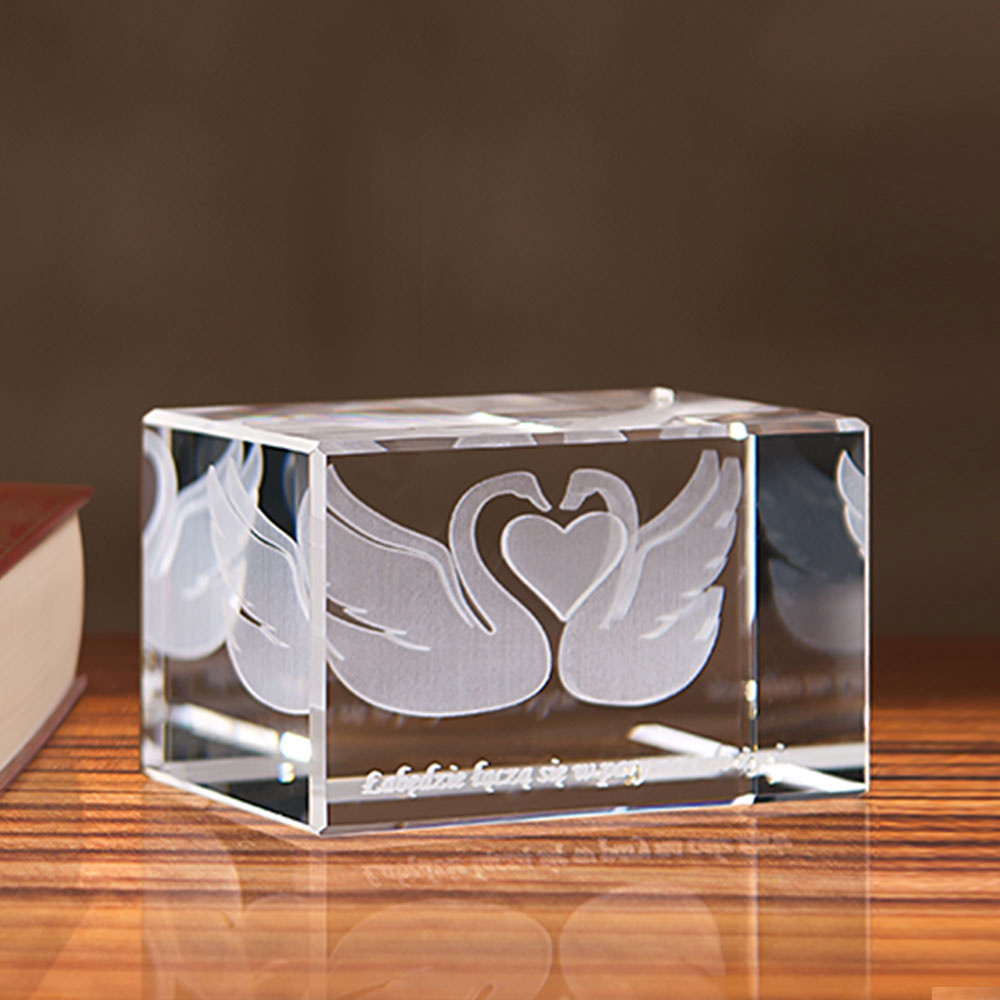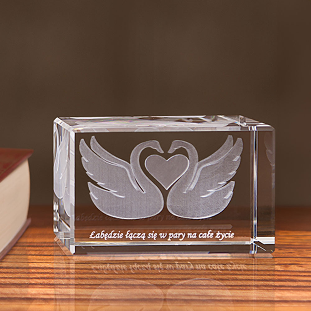 Wyrafinowana i ponad wszystko bardzo elegancka kryształowa statuetka zawiera w swoim wyrazie przekaz miłości, która jest prawdziwa i trwała. Dwa przepiękne i dostojne łabędzie 3D są symbolem złączenia swoich życiowych dróg na kolejne dni i lata. Profesjonalnie wykonany grawer 3D nadaje im wyjątkowo realistycznego charakteru, a dodatkowo pozwala na zamieszczenie własnego, osobistego wyznania. Kryształowy prezent 3D z łabędziami zachwyci najbliższa osobę i stanie się nieprzemijającym z czasem wyznaniem. Statuetka pakowana w eleganckie etui.
