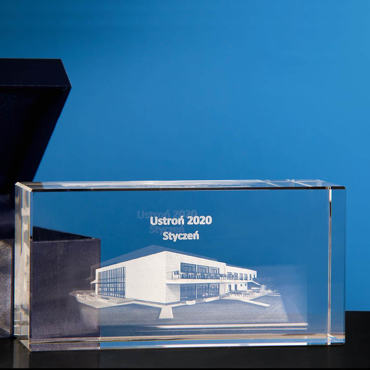 Szklana Statuetka firmowa - budynek 3D, nowa siedziba firmy