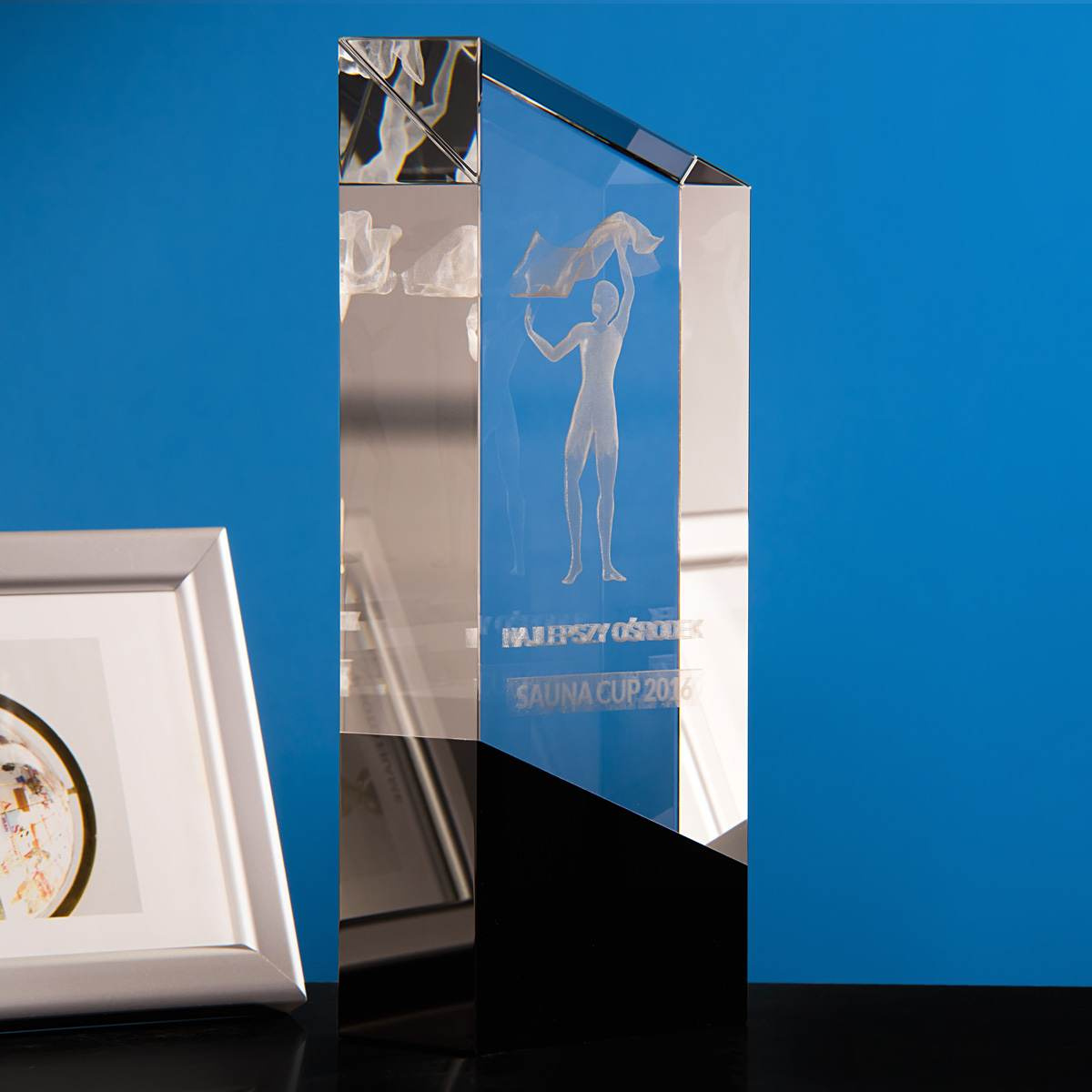 Statuetka grawerowana w trójwymiarze (3D) na zamówienie. Grawerunek tańczącej kobiety z ręcznikiem to tylko przykład. Możemy wygrawerować każdy inny dosłany nam projekt 3D bądź za dodatkową opłatą my przygotujemy według wskazań zamawiającego.