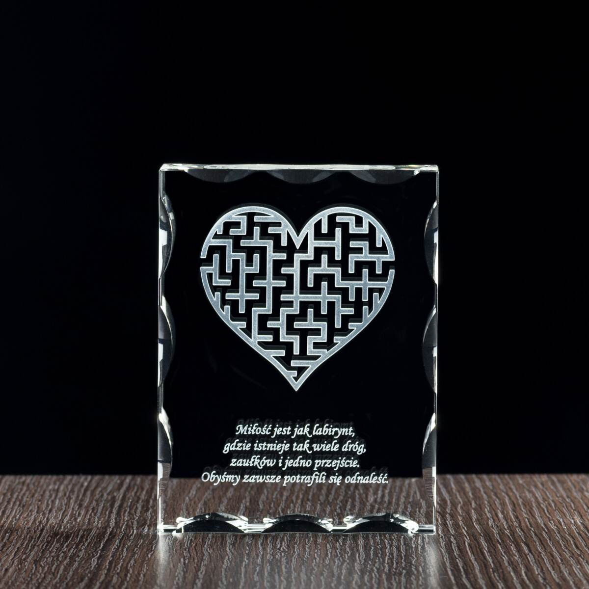 - Oryginalny prezent dla dziewczyny, żony, męża bądź chłopaka na rocznicę. Labirynt 3D (trójwymiarowy) wygrawerowany w krysztale z piękną dedykacją w dowód miłości.