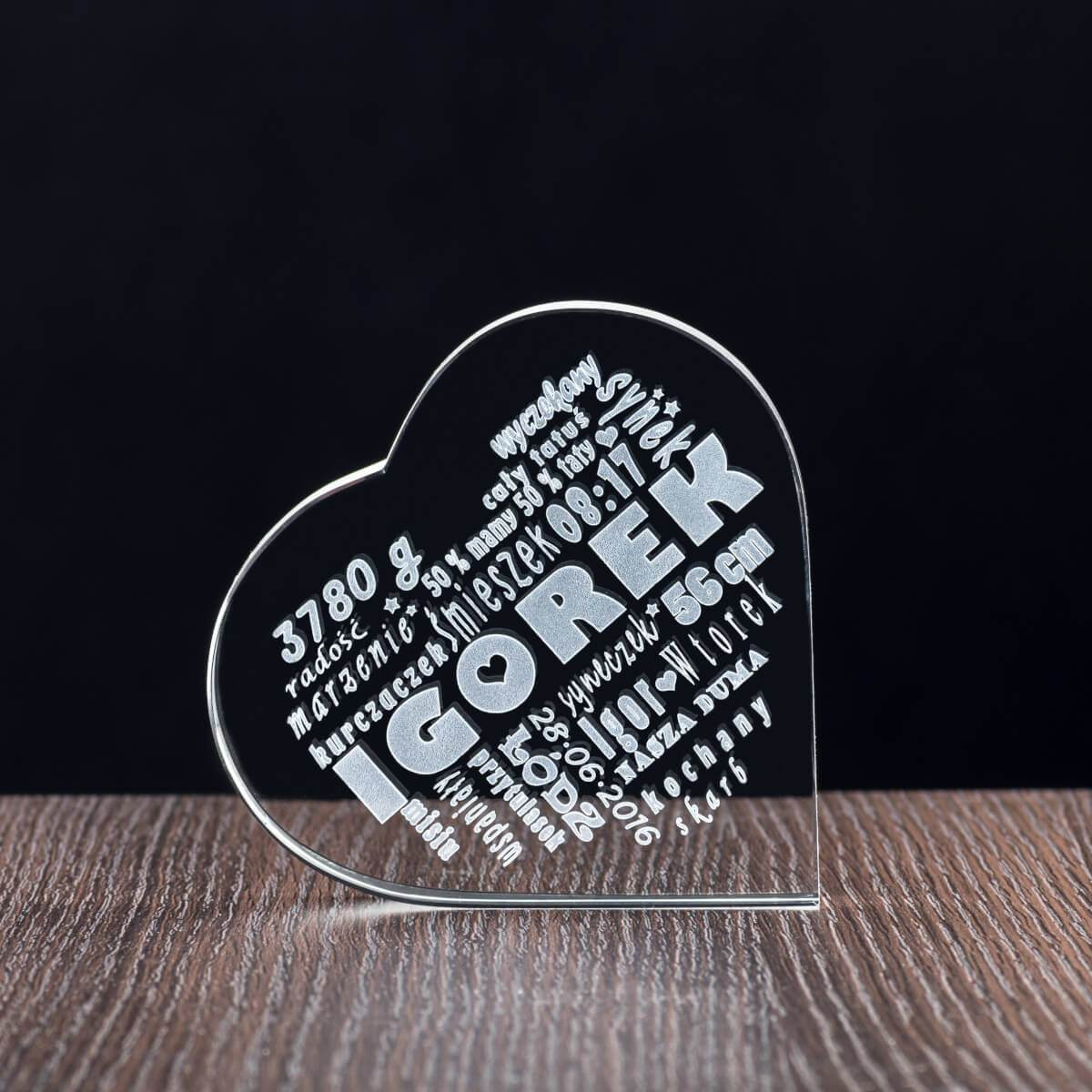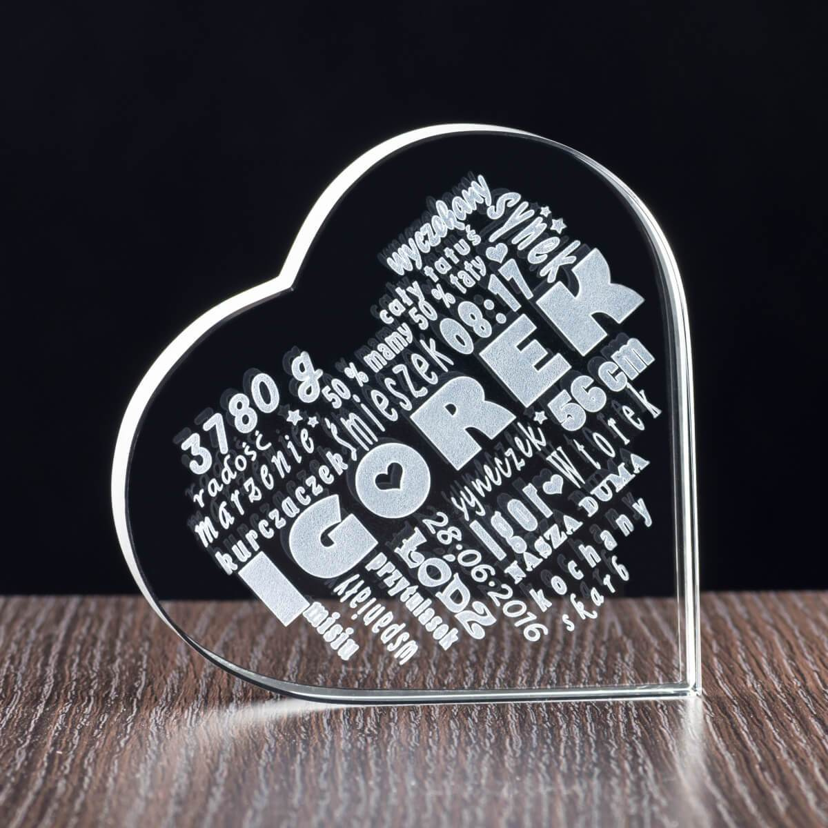 Prezent DLA MAMY - personalizowana metryczka dziecka w szklanym sercu