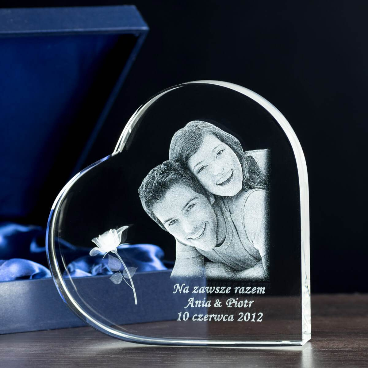 Kryształowe, subtelne i wytworne serce to piękna i niepowtarzalna pamiątka ślubna, która zawsze będzie przypominała o tym jedynym w swoim rodzaju dniu, w którym dwie drogi życia złączyły się w jedną, utkaną z miłości. Spersonalizowana kryształowa statuetka sprawia, że Państwa zdjęcie 3D w krysztale zawsze będzie emanowało radością i szczęściem rozświetlającym każdy kolejny dzień, a osobista dedykacja stanie się dzwonem oznajmiającym o nieprzemijających uczuciach. To także perfekcyjny sposób na składane przez Nowożeńców podziękowania dla rodziców, czy upominki dla gości weselnych. Cena dotyczy graweru 3D dwóch osób.