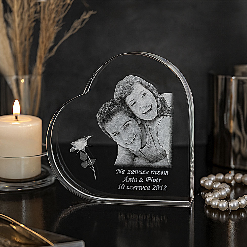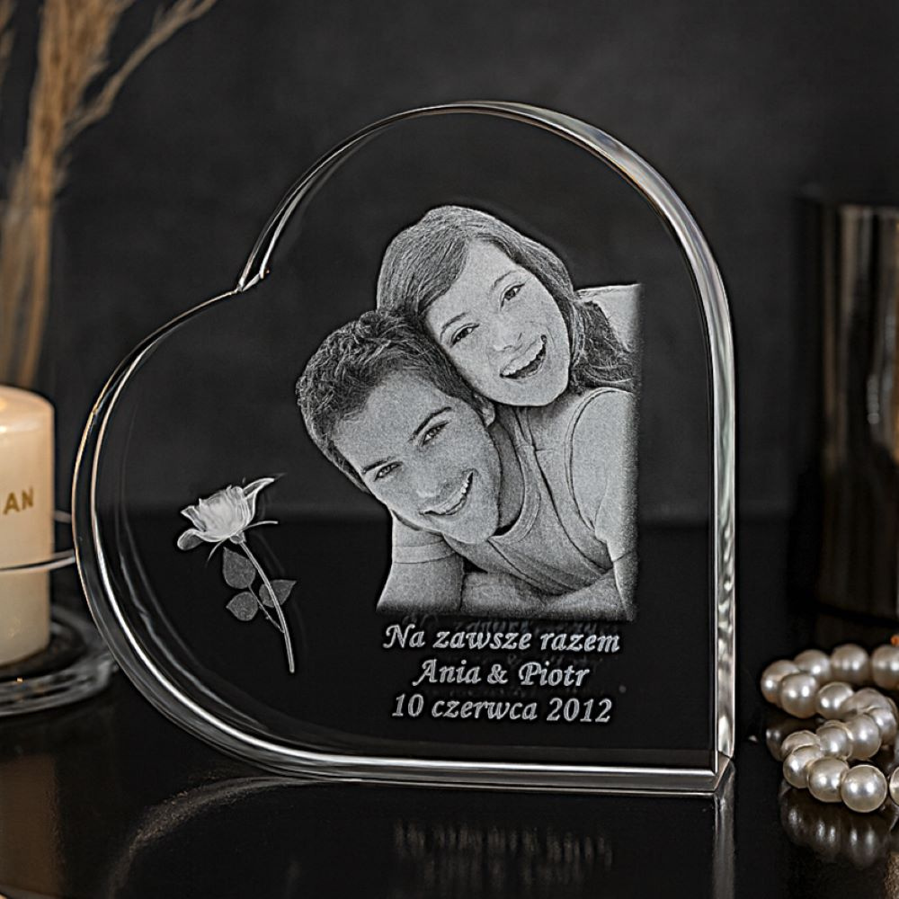 Prezent dla rocznicę - zdjęcie 3D w szklanym sercu