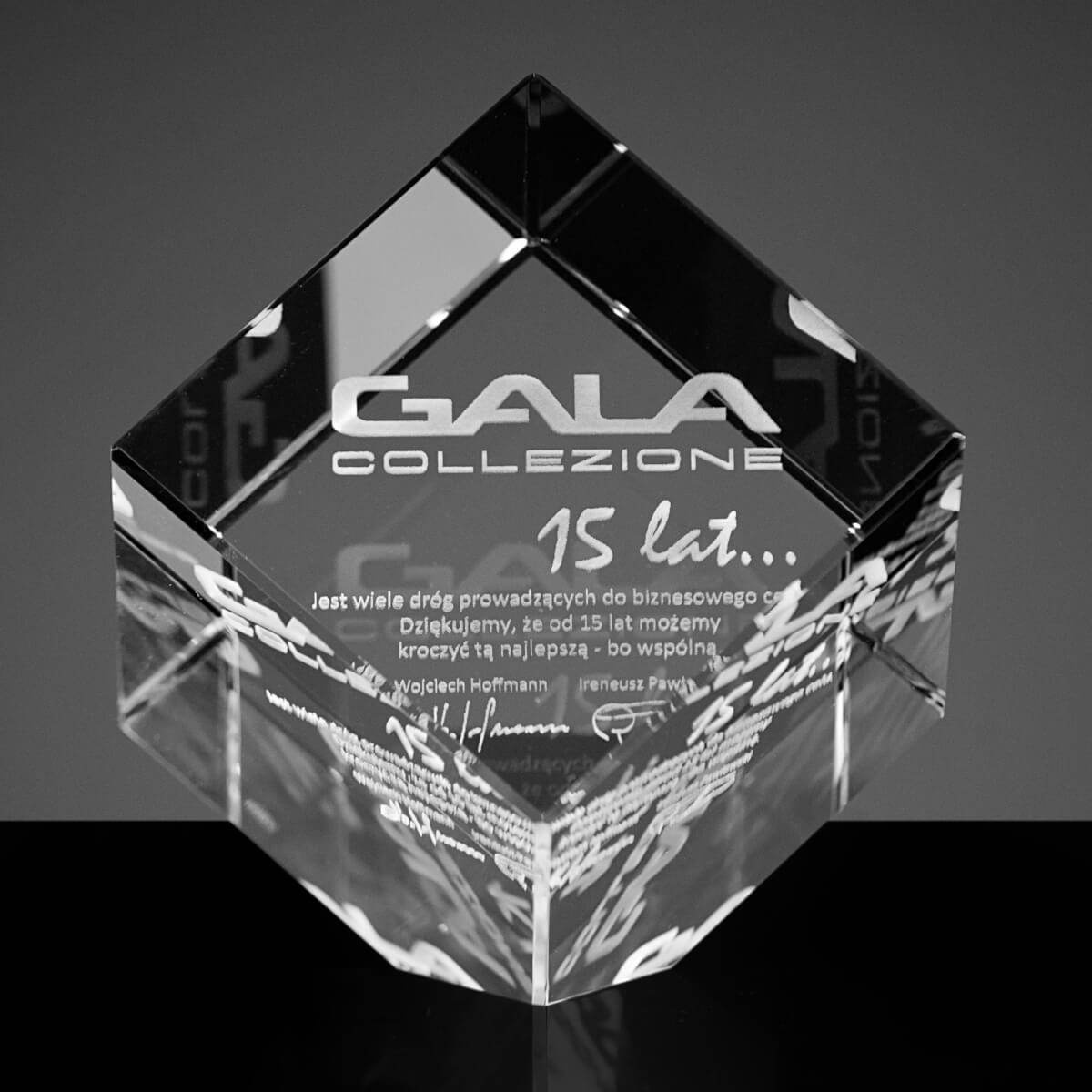 Statuetka na jubileusz firmy - sześcian ścięty - etui w zestawie