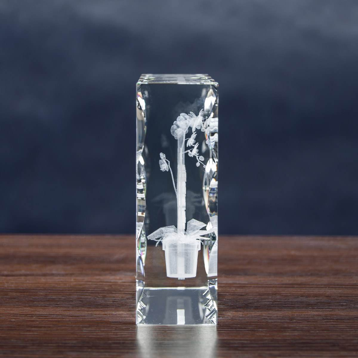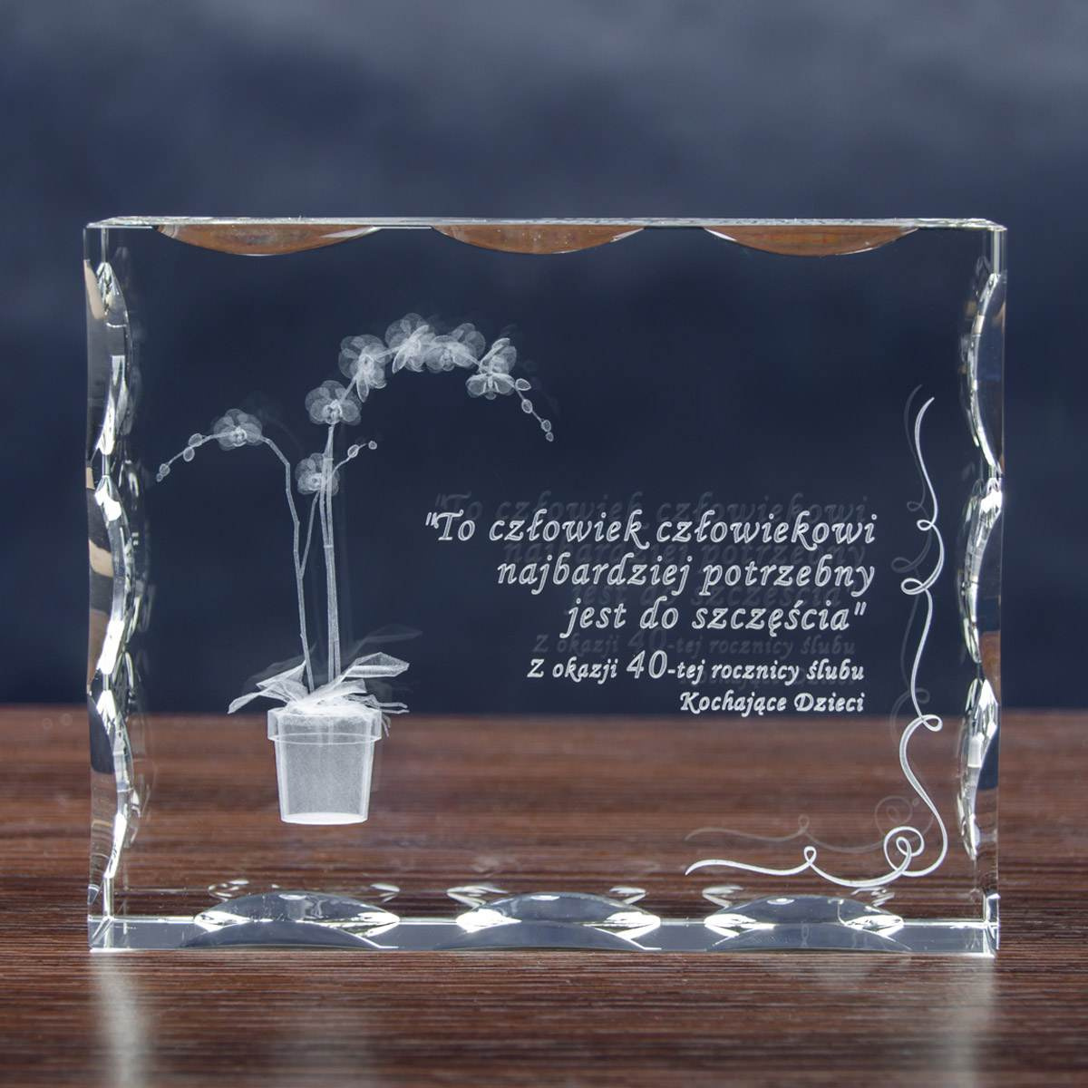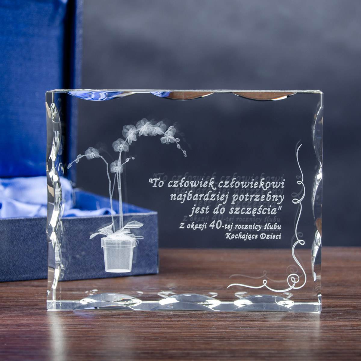 Piękny storczyk 3D wygrawerowany w ozdobnym krysztale z możliwością personalizacji