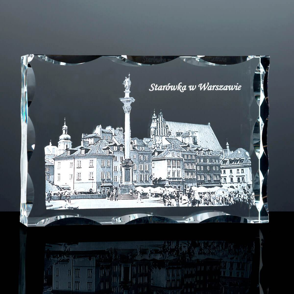 - Podziękowania dla Promotora pracy w postaci trójwymiarowego zdjęcia Starówki w Warszawie wygrawerowanego w kryształowej statuetce. Indywidualna dedykacja, zgodna z życzeniem zamawiającego wliczona w podaną cenę. Statuetka pakowana w etui.
