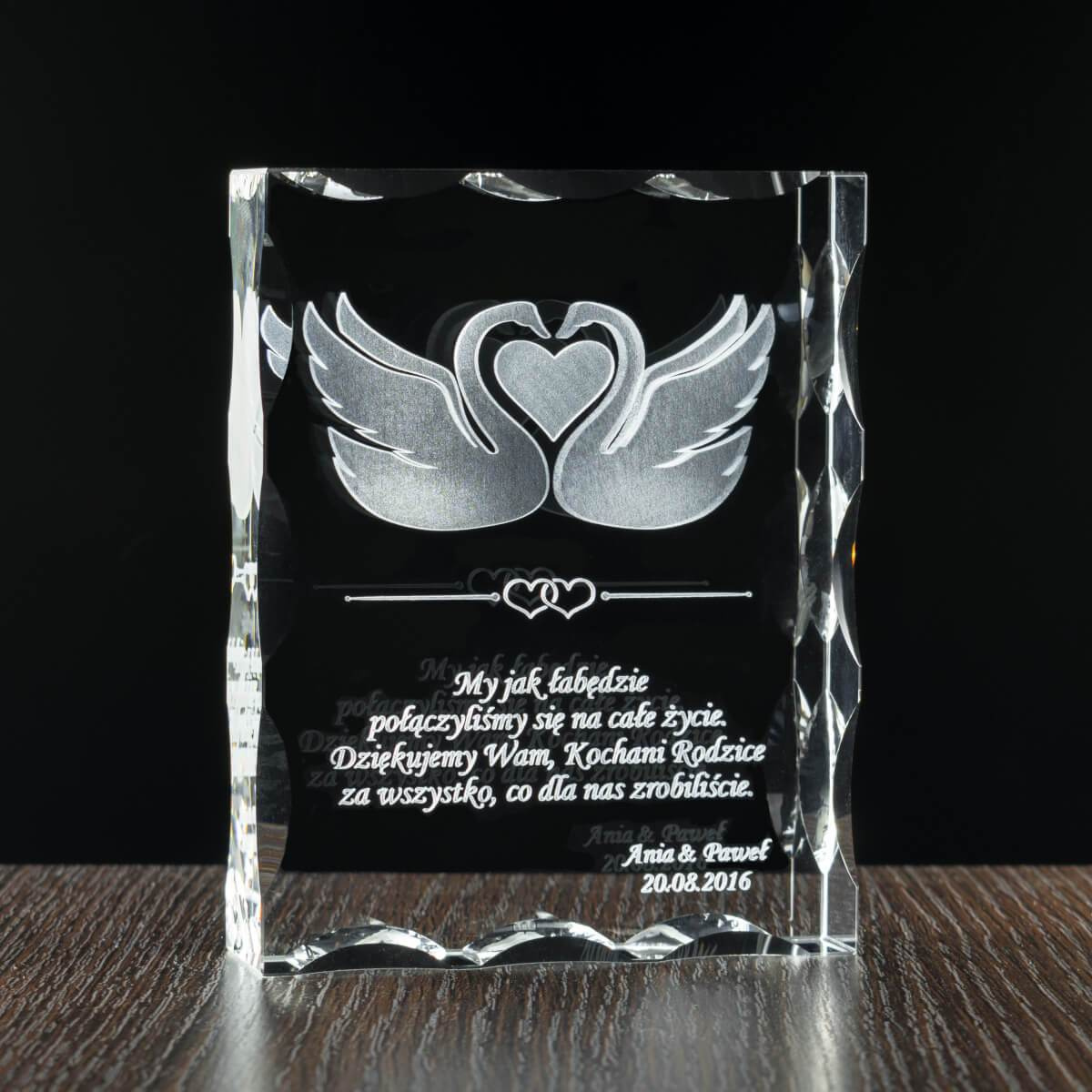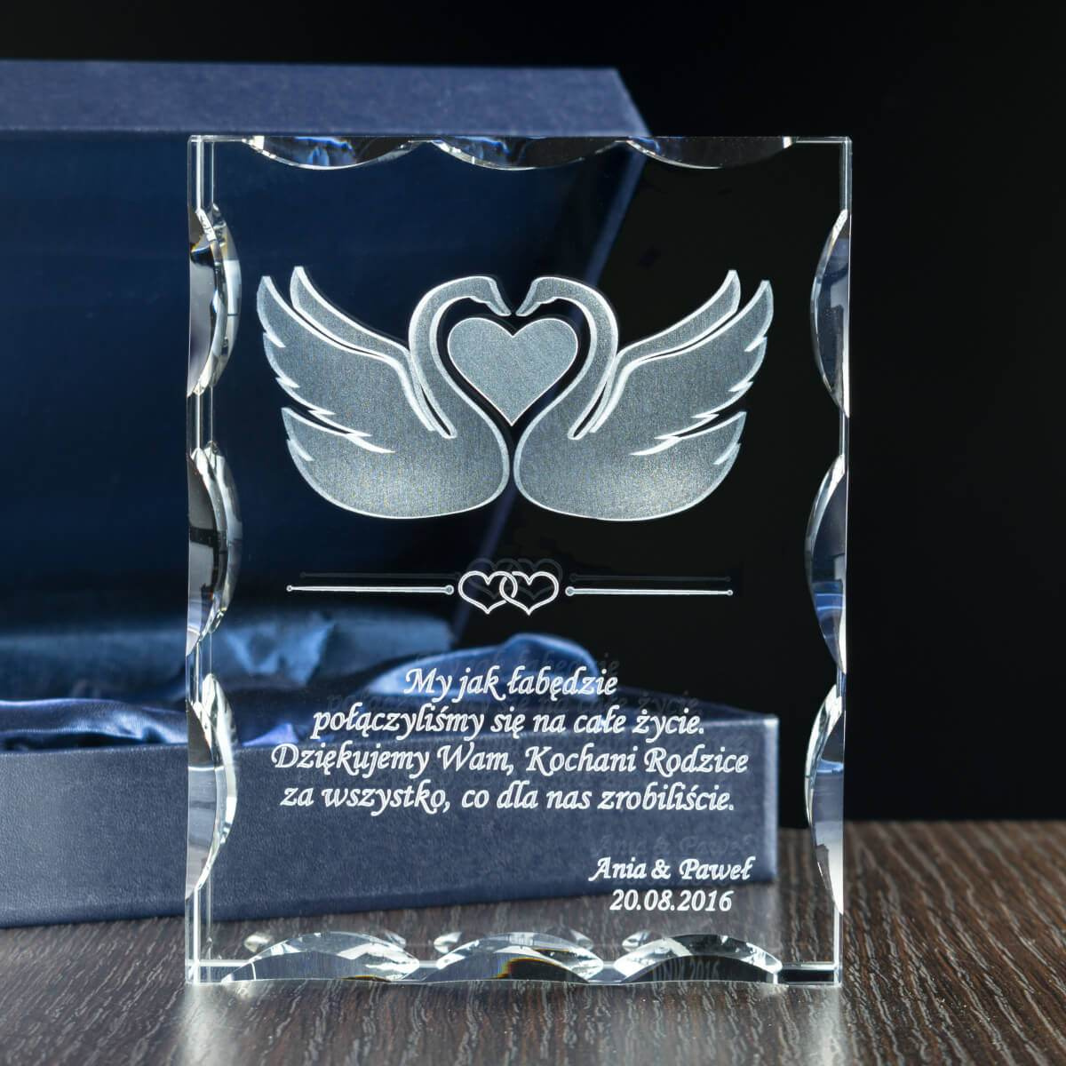 - Zakochane łabędzie w zdobionym krysztale Lux to przepiękne podziękowanie dla rodziców. Statuetka pakowana w eleganckie etui.