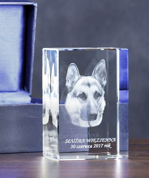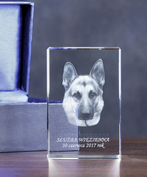 Pies w służbie mundurowej - zdjęcie 3D w szkle. Grawer