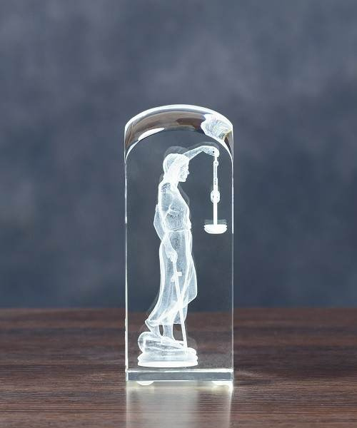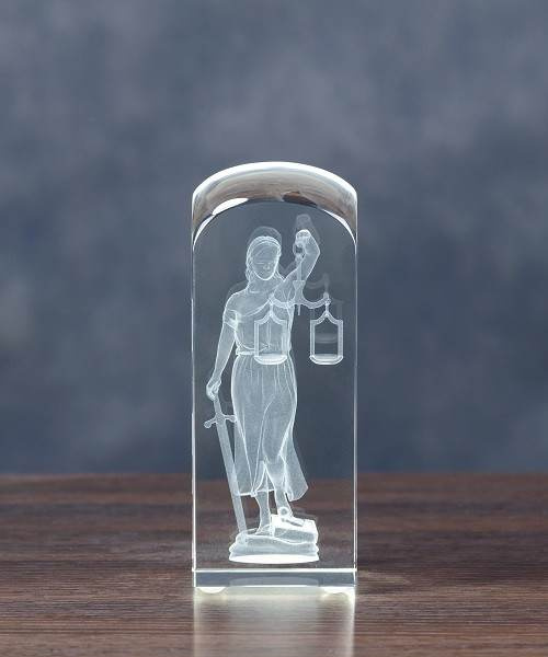 • Trójwymiarowa postać Temidy wygrawerowana w szklanej statuetce. Może być opatrzona dedykacją zgodnie z Twoim życzeniem. Kryształ pakowany w eleganckie etui.