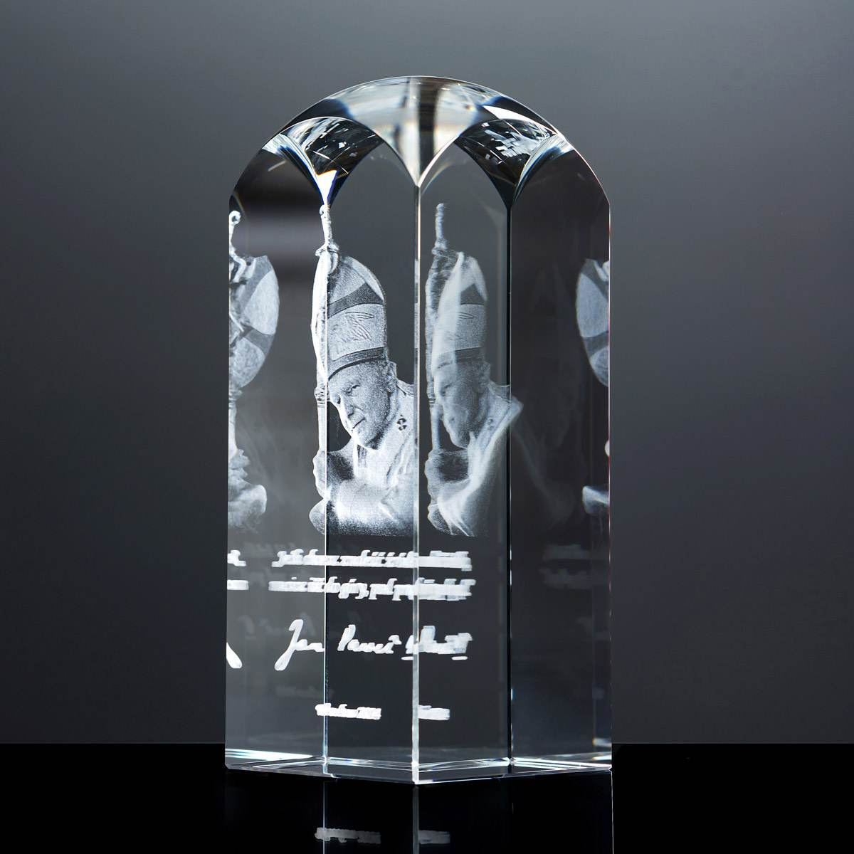 - Trójwymiarowe zdjęcie papieża Jana Pawła II w krysztale.