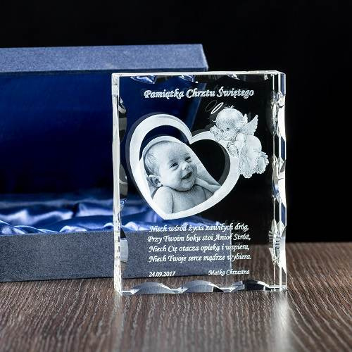 Opinie o PAMIĄTKA CHRZTU - zdjęcie dziecka w sercu GRAWER W SZKLE