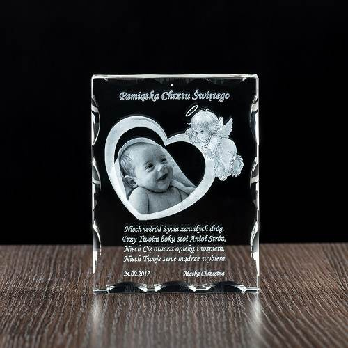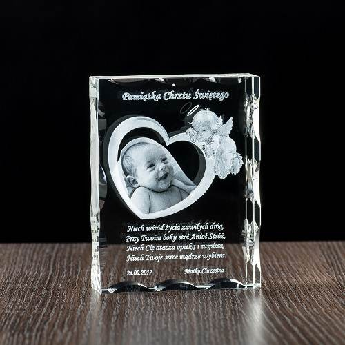 PAMIĄTKA CHRZTU - zdjęcie dziecka w sercu GRAWER W SZKLE