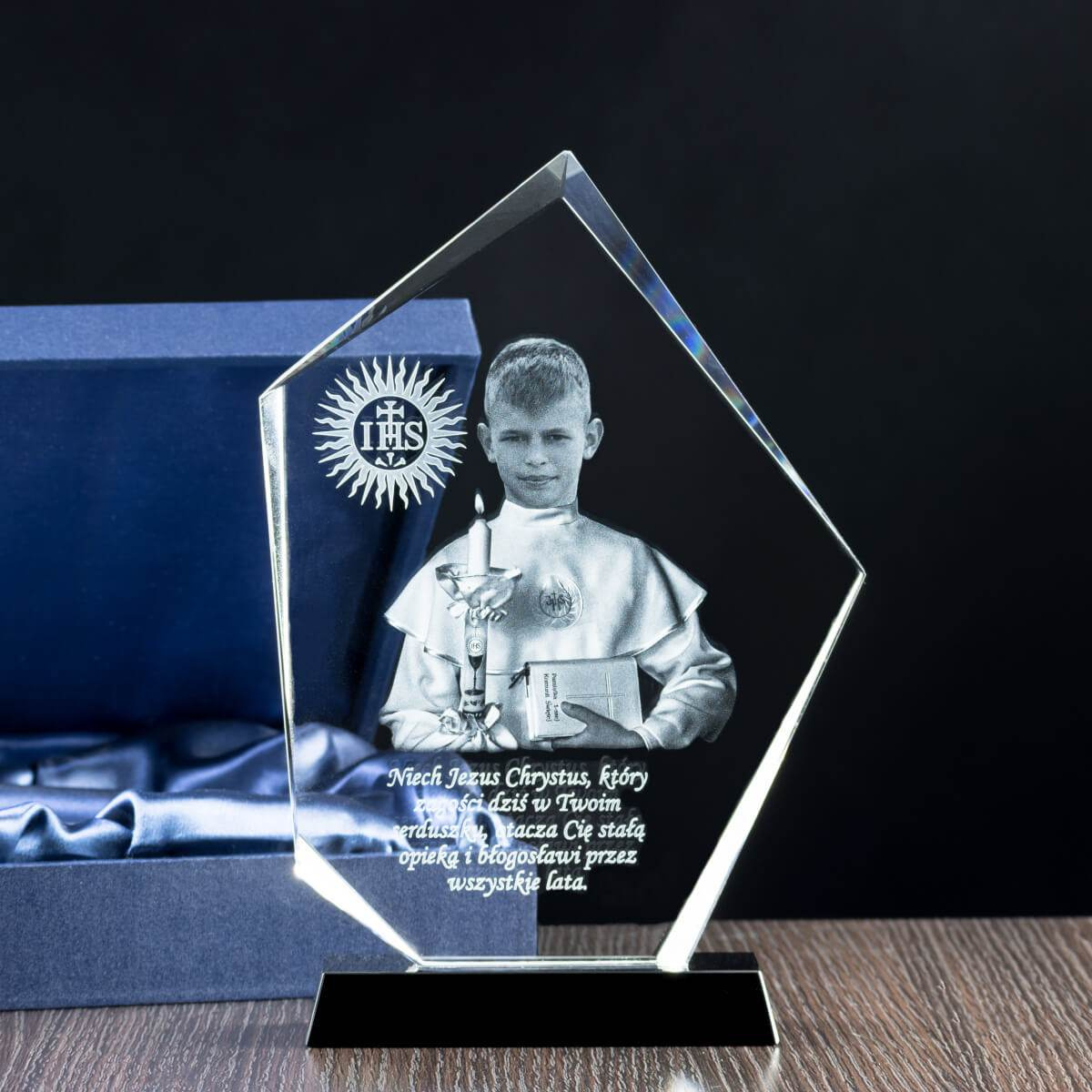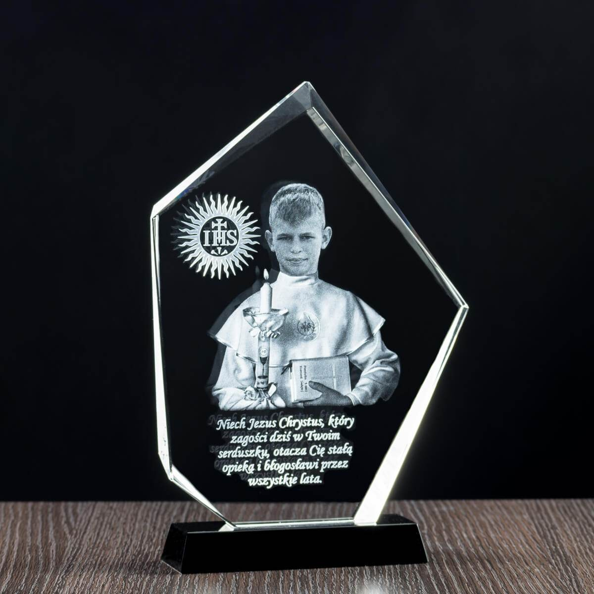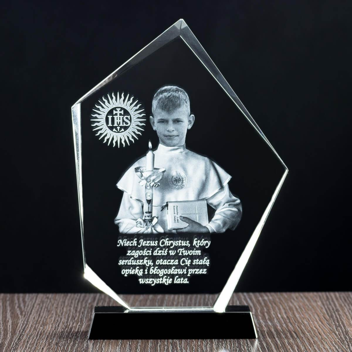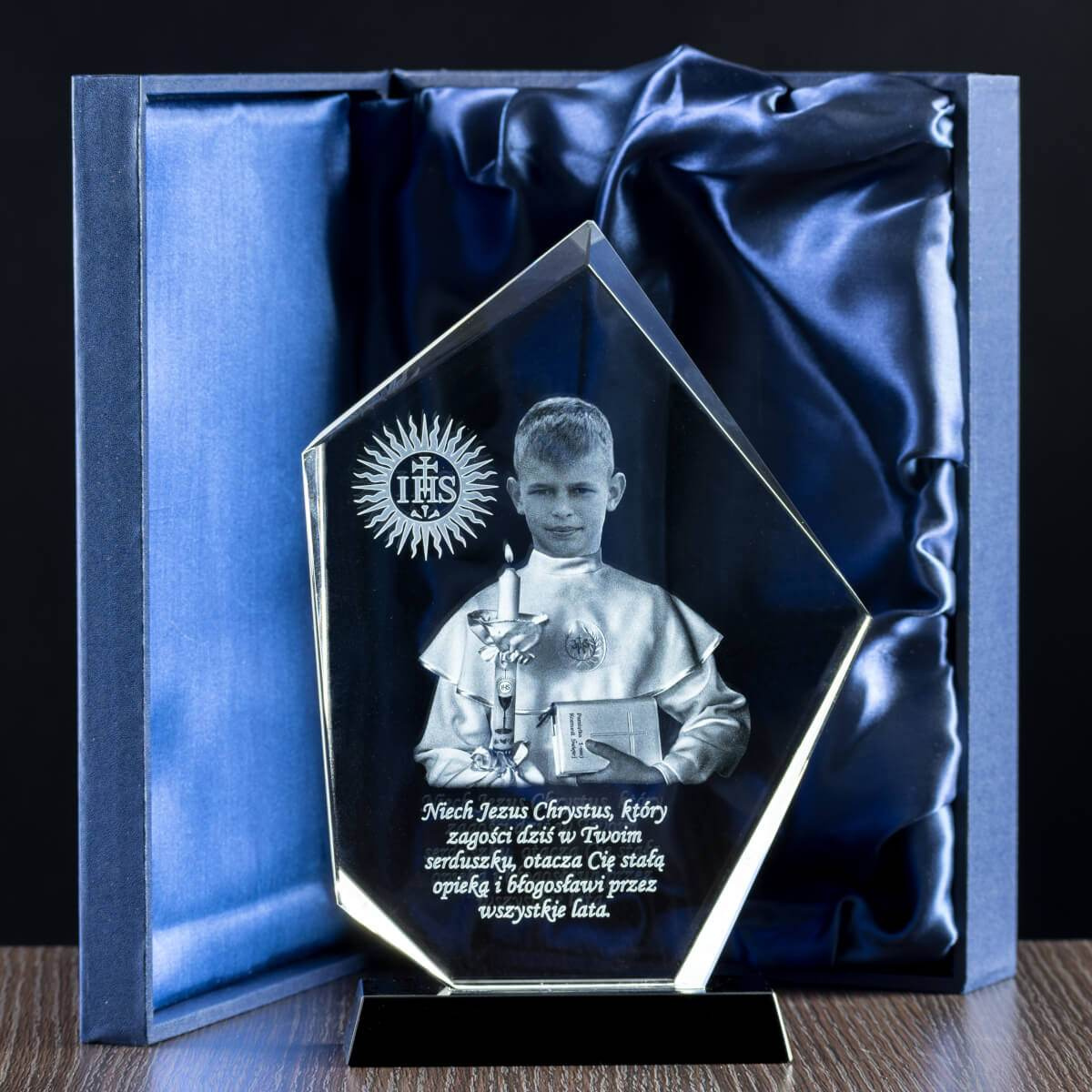 - Fotomontaż Twojego zdjęcia wygrawerowany w krysztale - pomysł na Pamiątkę Komunii Świętej. Możesz go wręczyć w dniu przyjęcia, nie trzeba czekać na zdjęcie w albie. Zrobimy to za Ciebie.