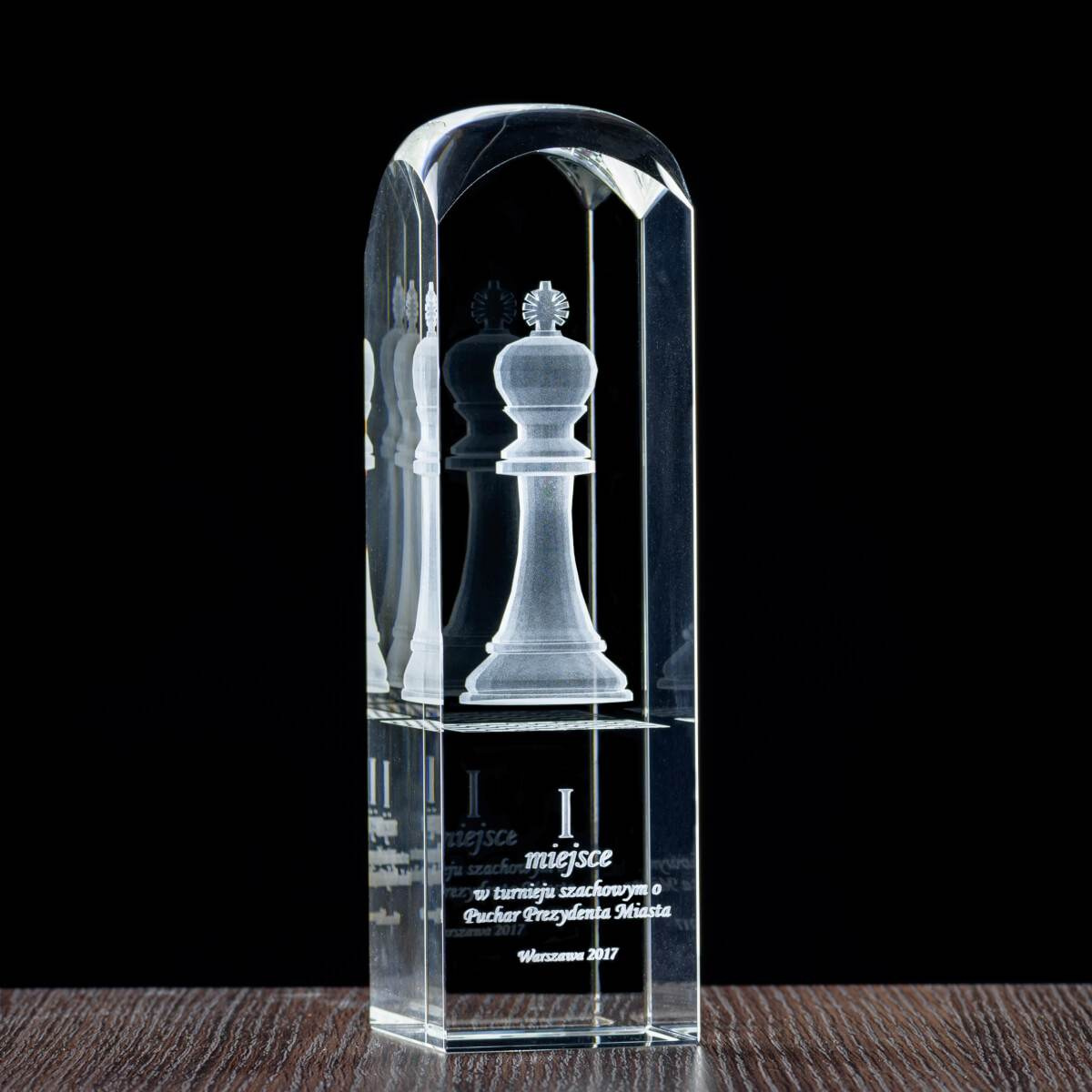 Nagroda za pierwsze miejsce, figura szachowa KRÓL wygrawerowana w krysztale