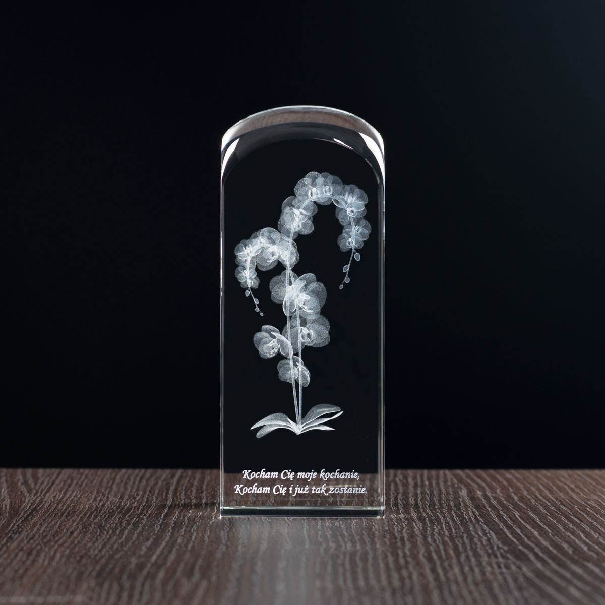 - Kwiat orchidei - czyli storczyk wygrawerowany w kryształowej kolumnie w postaci personalizowanego prezentu urodzinowego czy imieninowego.