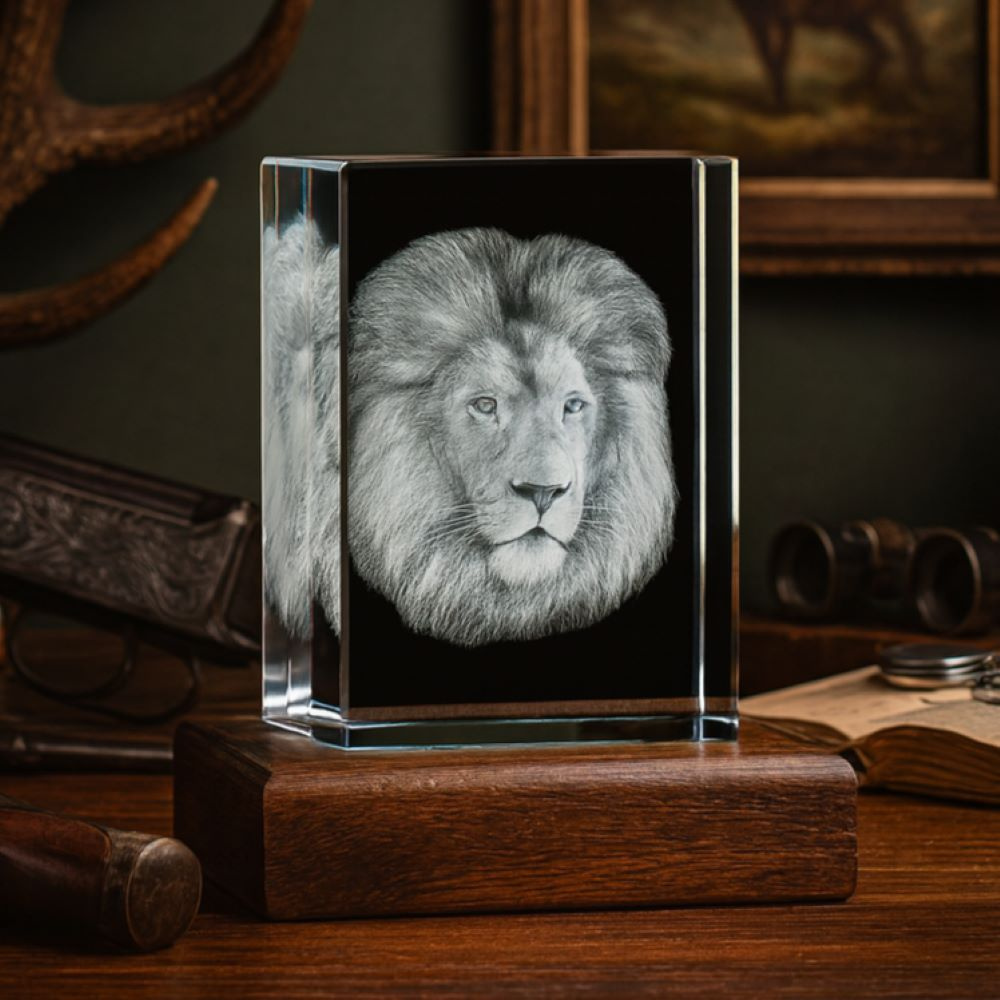 -MEGASTATUETKA- Król zwierząt, Model Lwa grawer 3D w szkle dla myśliwego