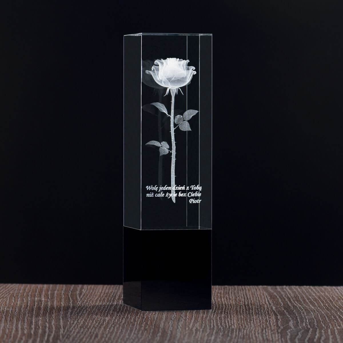 Elegancka i okazała statuetką z trójwymiarowym grawerem róży wewnątrz bryły. Ciekawy pomysł na prezent dla nauczyciela / wychowawcy. Możliwość personalizacji tekstem.