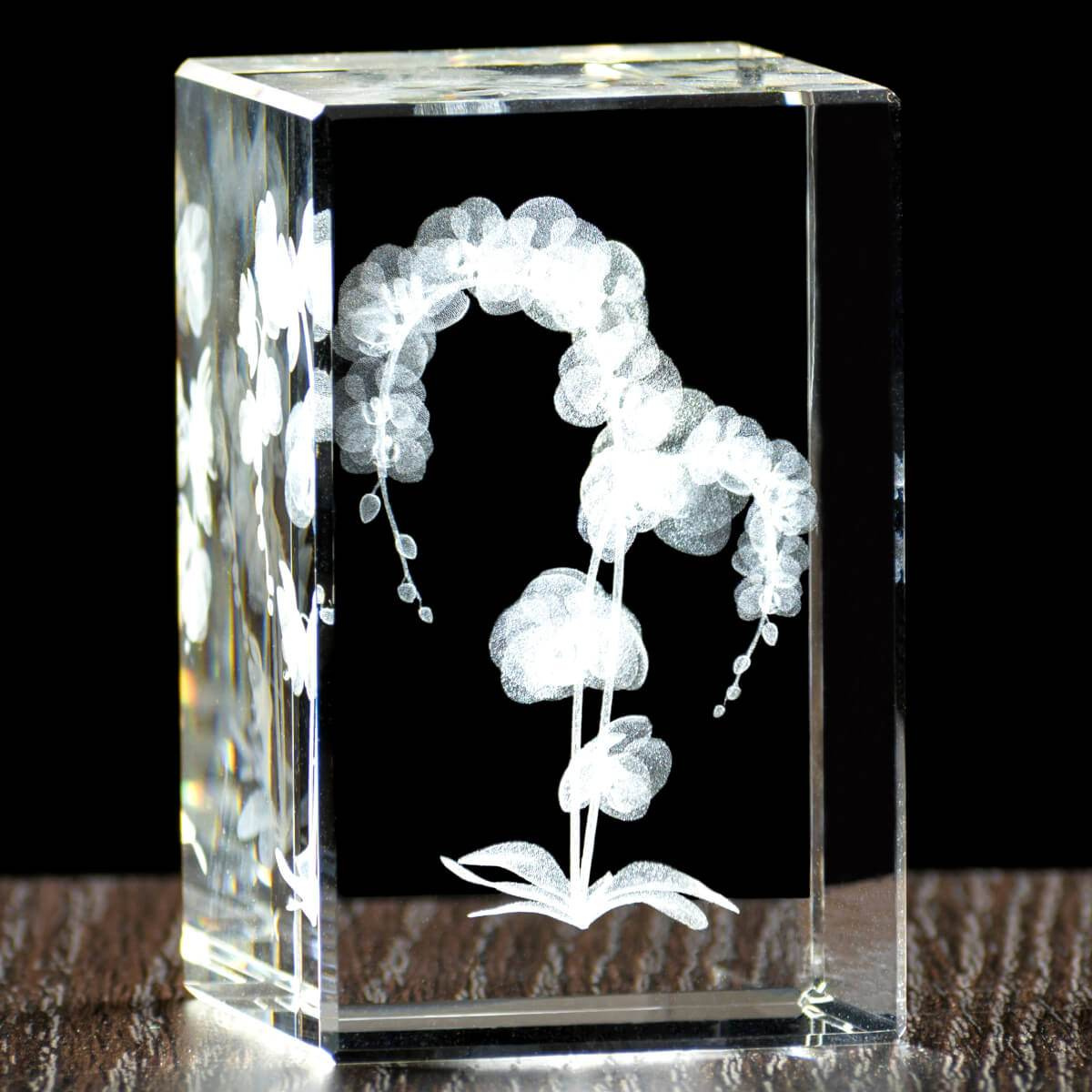 Storczyk 3D, piękny kwiat w krysztale z własną dedykacją