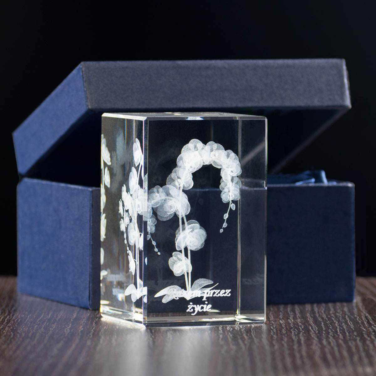 - Subtelny storczyk 3D. Piękny kwiat na urodziny wygrawerowany w krysztale to niecodzienny widok który potrafi zszokować obdarowaną osobę.