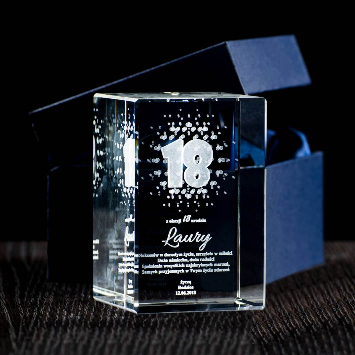Prezent na osiemnaste urodziny - grawer w szkle. Statuetka kryształowa w etui