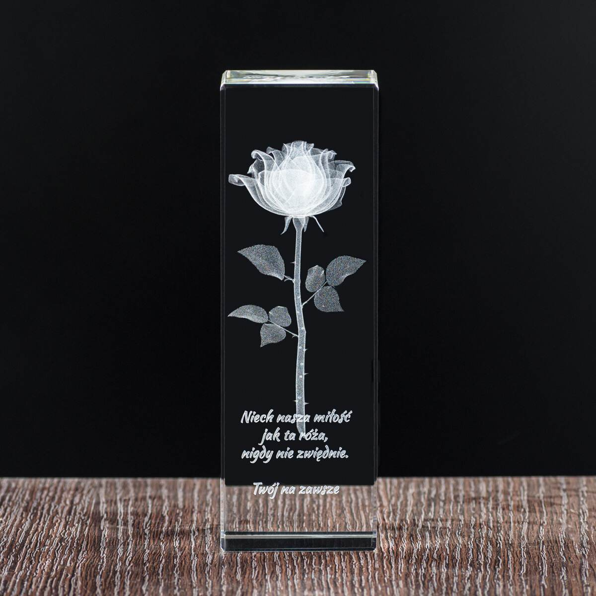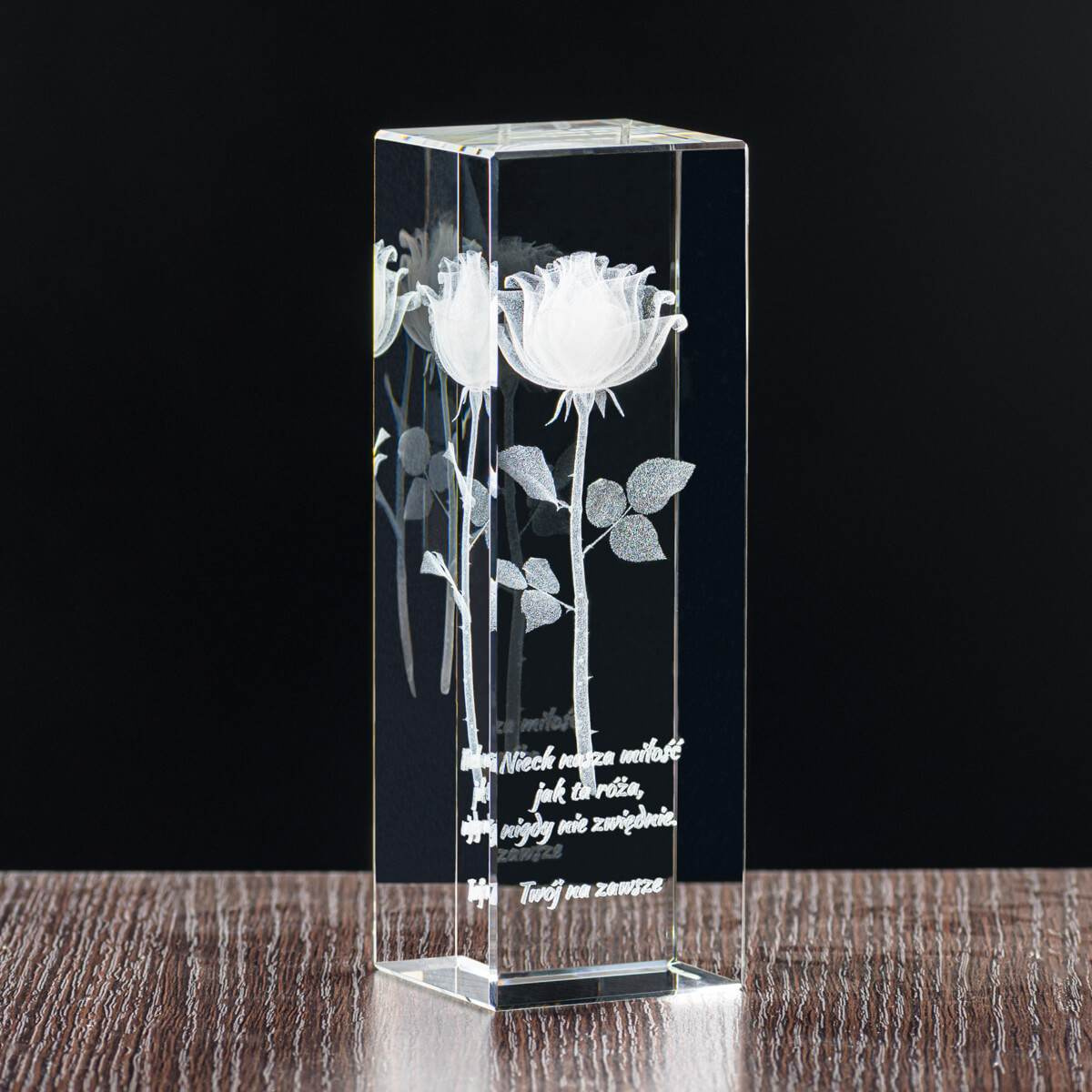 Trójwymiarowa, grawerowana róża na rocznicę ślubu w subtelnej statuetce