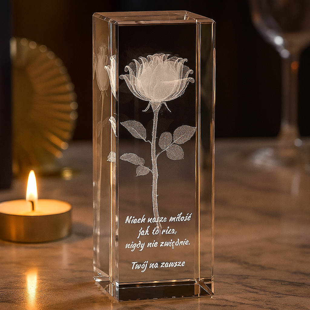 Piękna, grawerowana róża 3D z własną dedykacją dla ukochanej