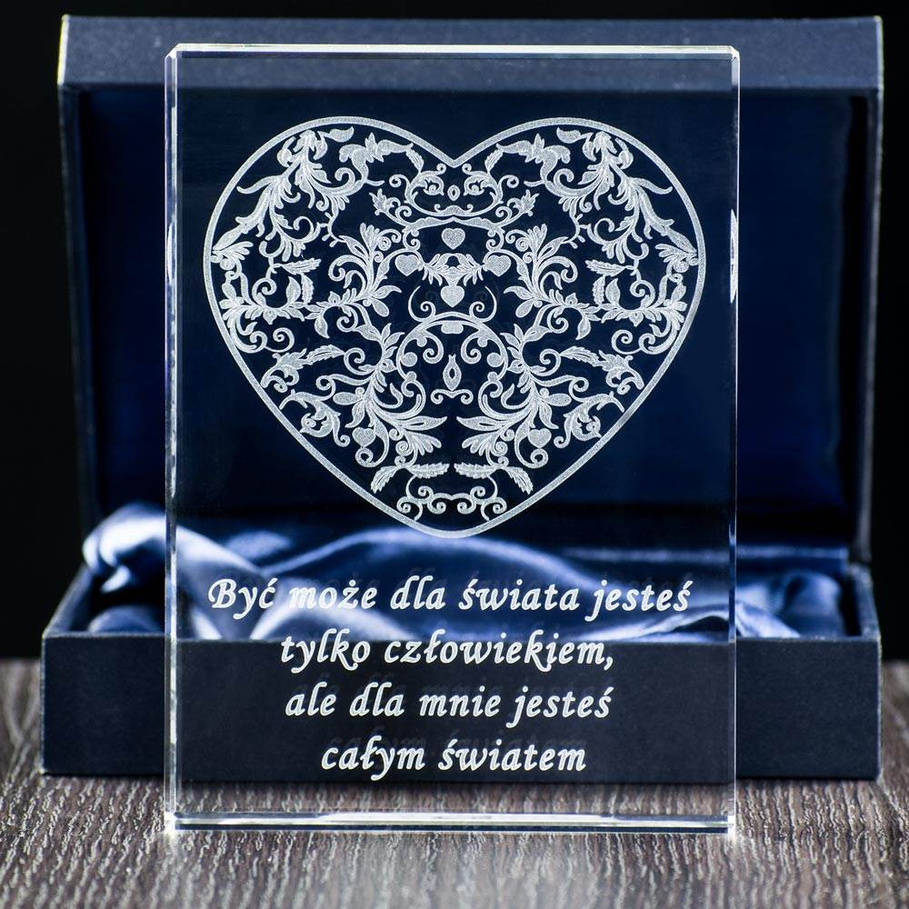 Ażurowe serce wygrawerowane w szkle - statuetka 3D na prezent