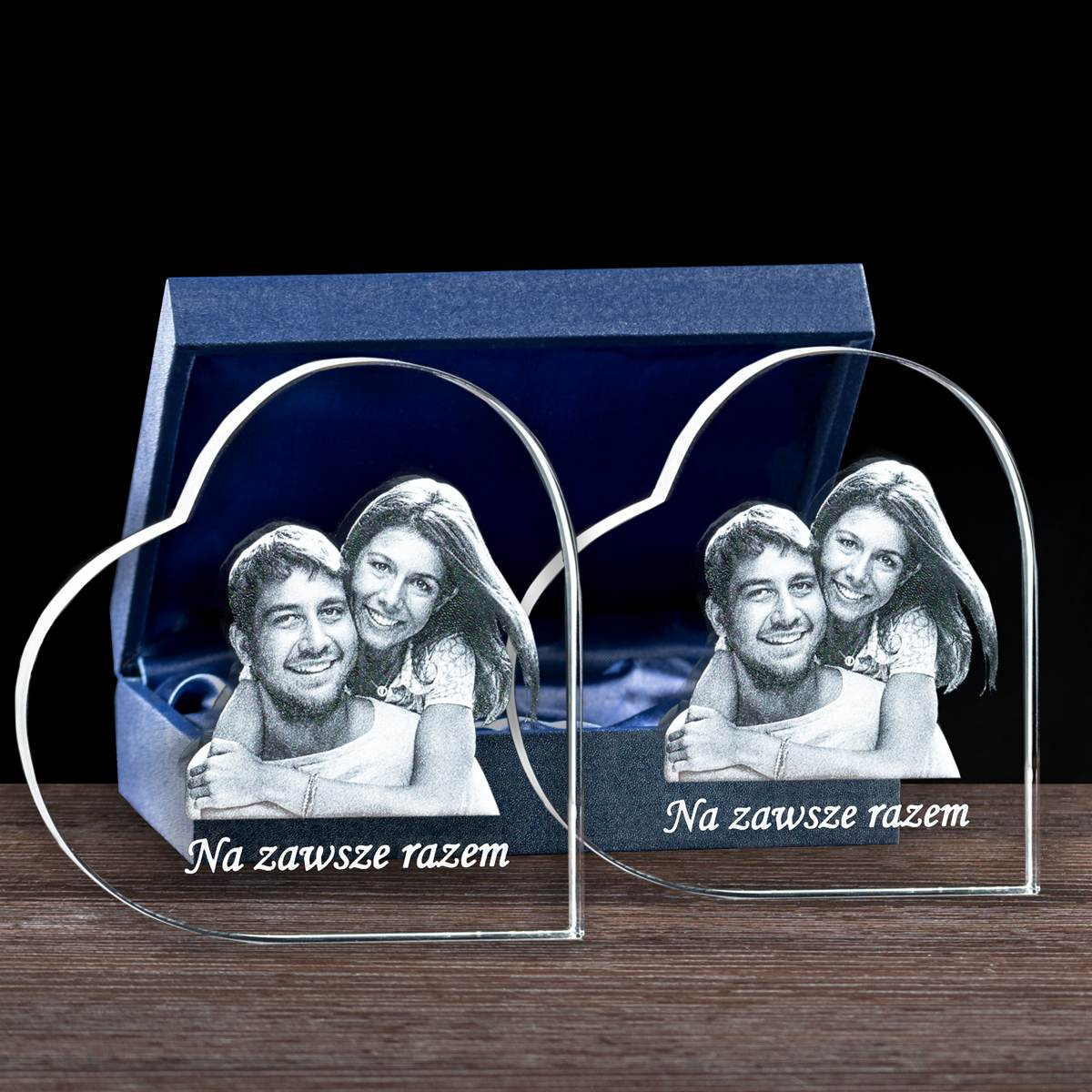 - Elegancki zestaw fotokryształów 2D z grawerem Waszych zdjęć dla Zakochanej pary na Walentynki, po jednej dla każdego.