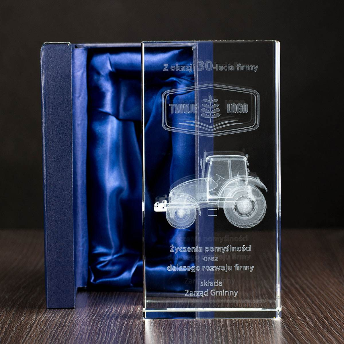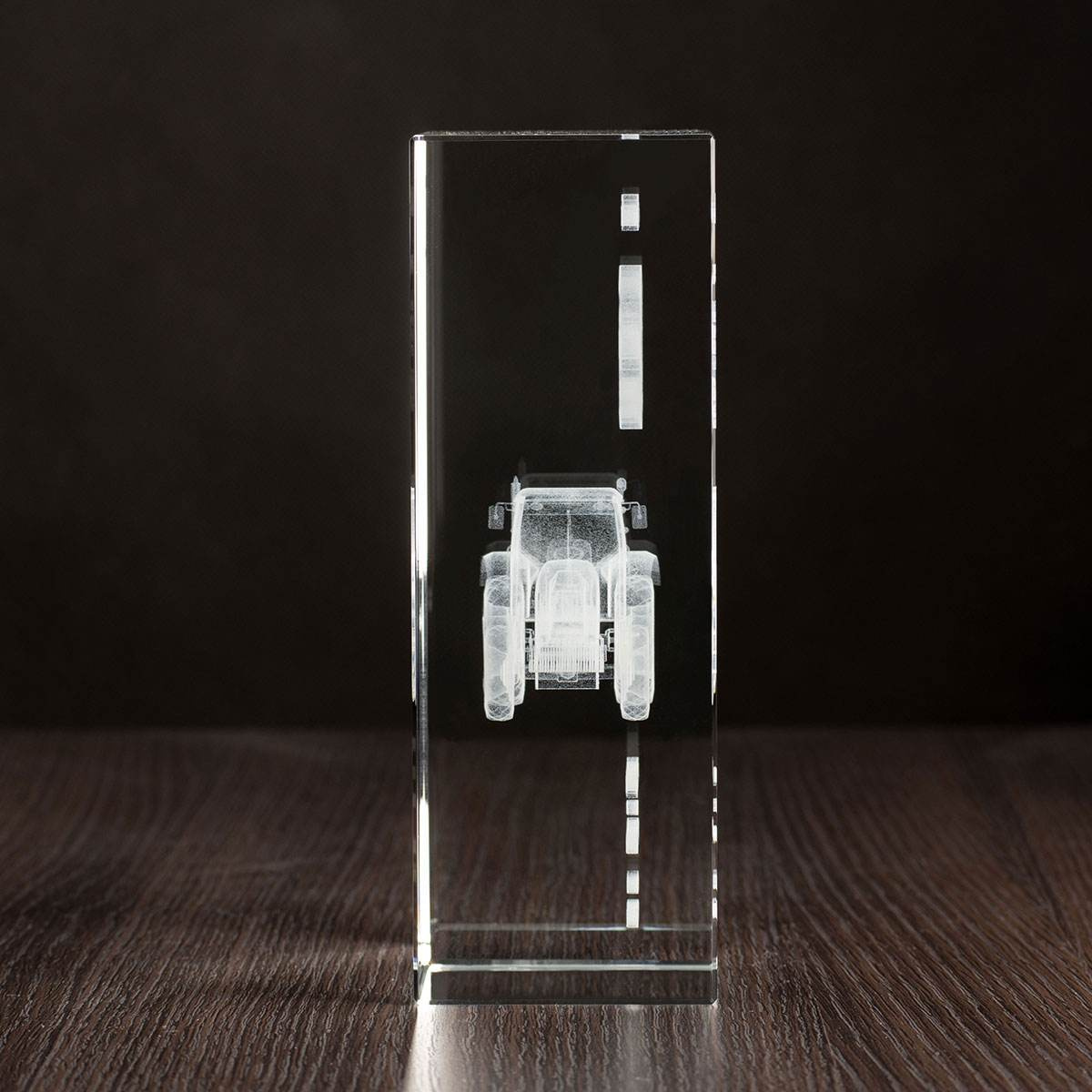 - Ciągnik 3D - trójwymiarowy model w krysztale z całkowicie spersonalizowaną dedykacją. Statuetka jako nagroda, prezent lub upominek dla rolnika, właściciela firmy branży rolnej lub dla gospodarza. Kryształ pakowany w etui.
