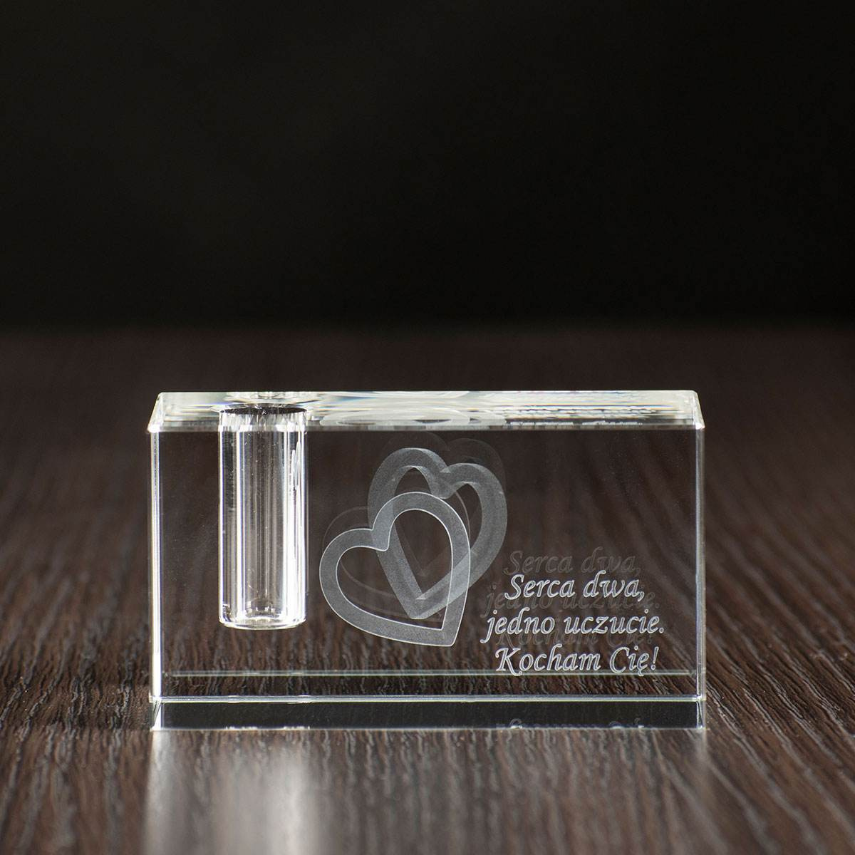 Prezent dla ukochanej - stojak na długopis SPLECIONE SERCA grawer w szkle