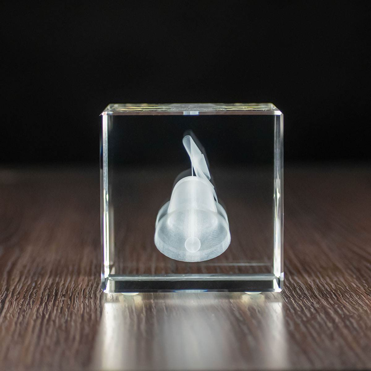 Dzwonki 3D wygrawerowane w szklanej statuetce jako prezent na Boże Narodzenie. To także pomysł na upominek firmowy dla kluczowych klientów. Możliwość dodania własnych spersonalizowanych życzeń bądź loga firmowego. Rekomendujemy podstawkę LED w celu uzyskania efektu lampki nocnej.