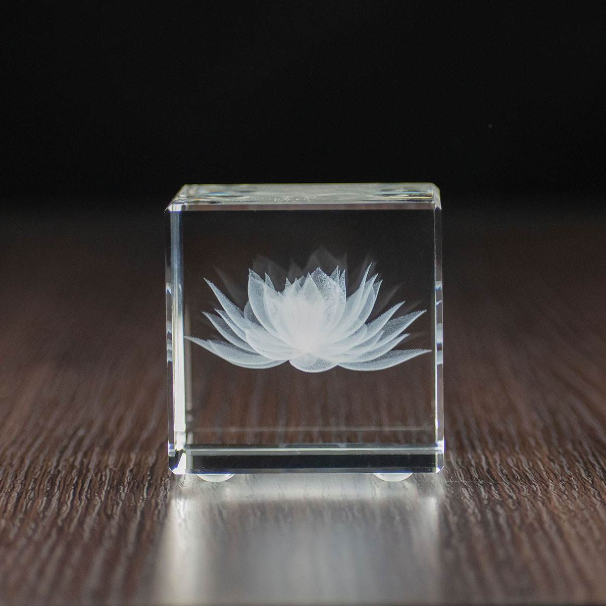 Upominek dla kobiety. Statuetka 3D z kwiatem lili wewnątrz sześcianu. Dedykacja spersonalizowana