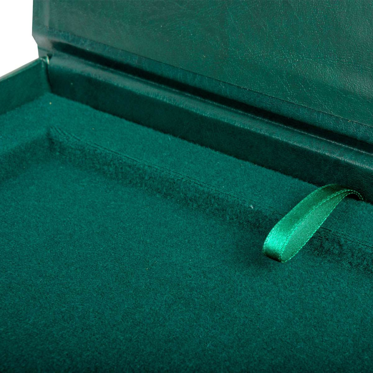 • Zielone Etui Sameti dedykowane dla dyplomów 8x10 w układzie pionowym. Eleganckie uzupełnienie spersonalizowanego prezentu w formie dyplomu.