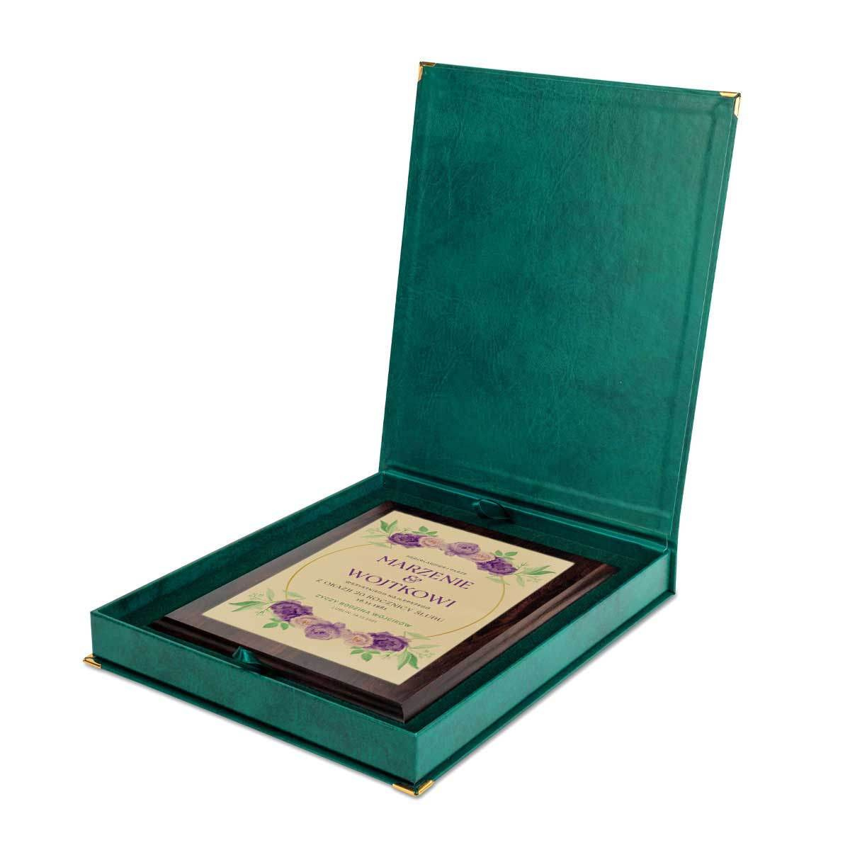 Dyplom rocznicowy – elegancki prezent z tabliczką w kolorze złoty mat