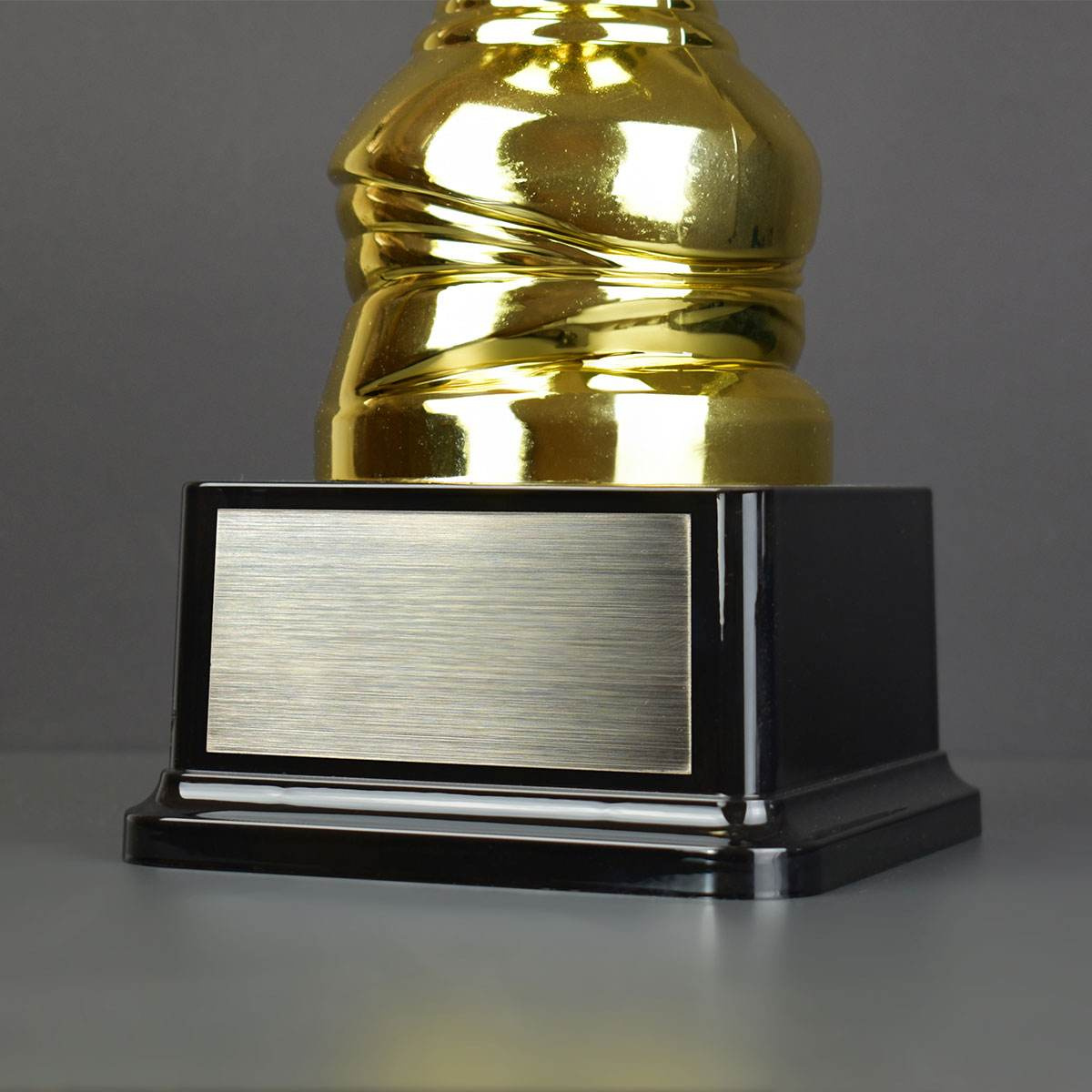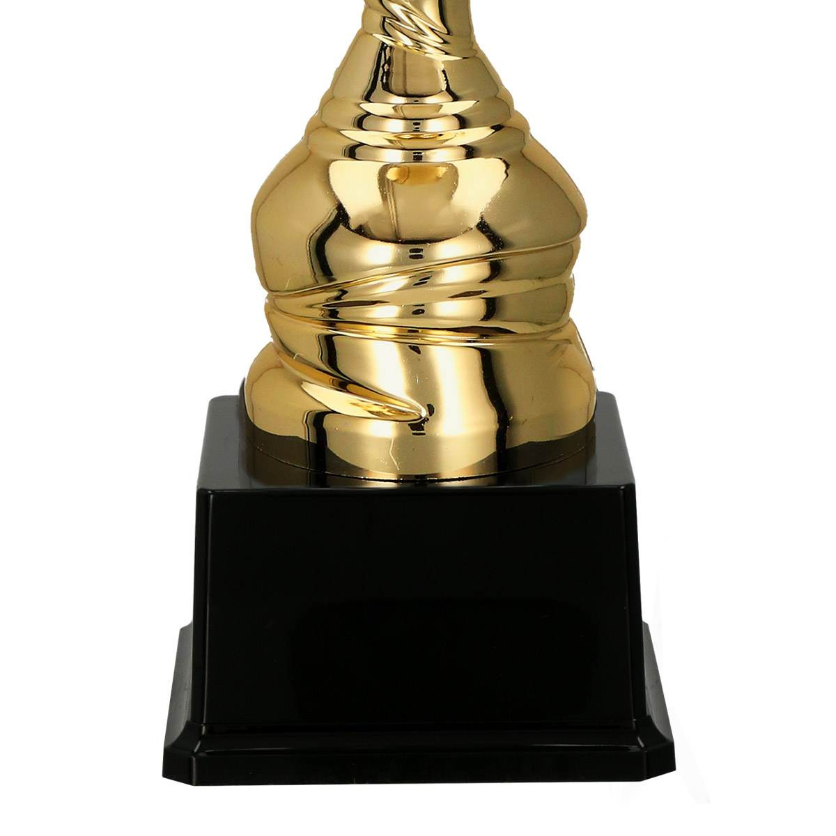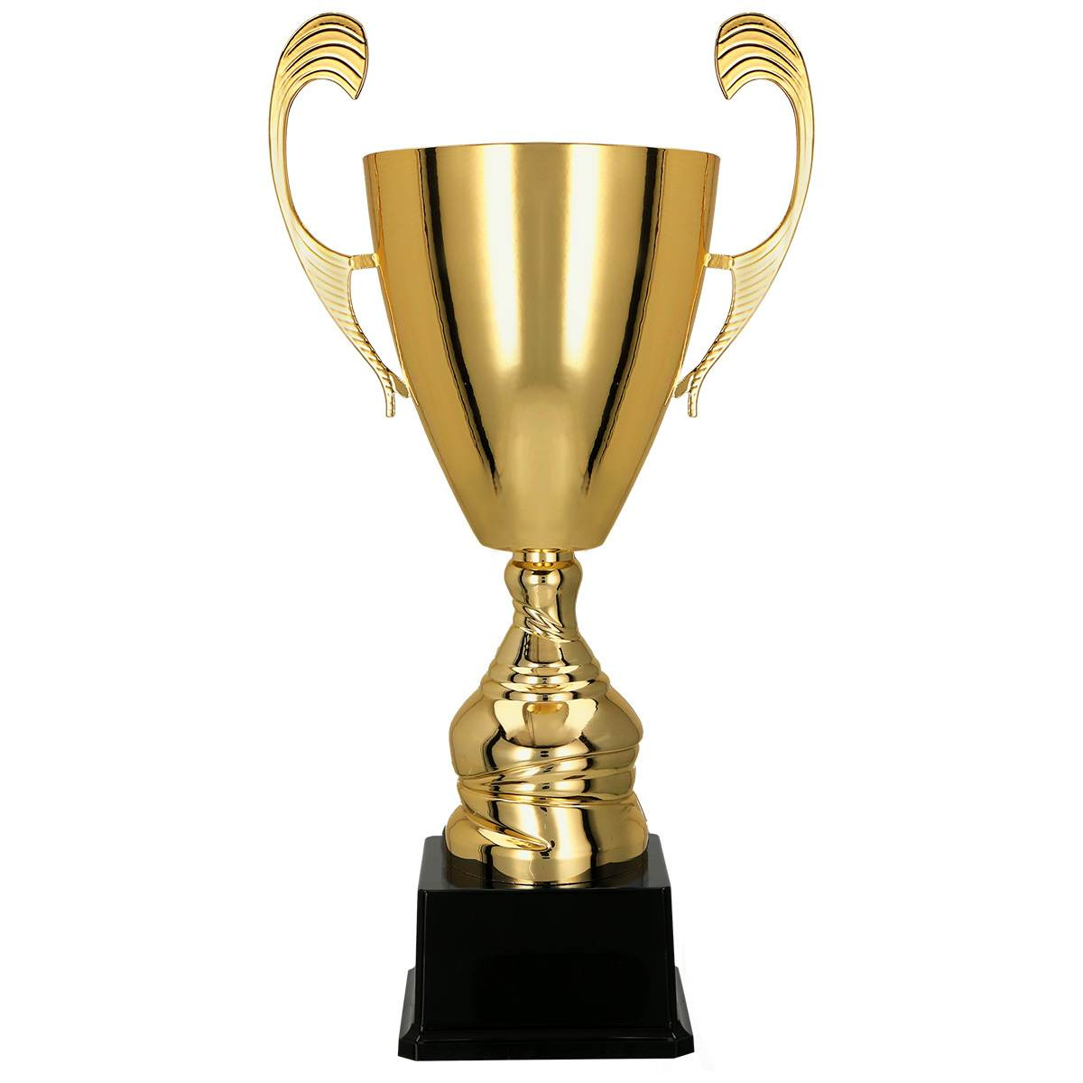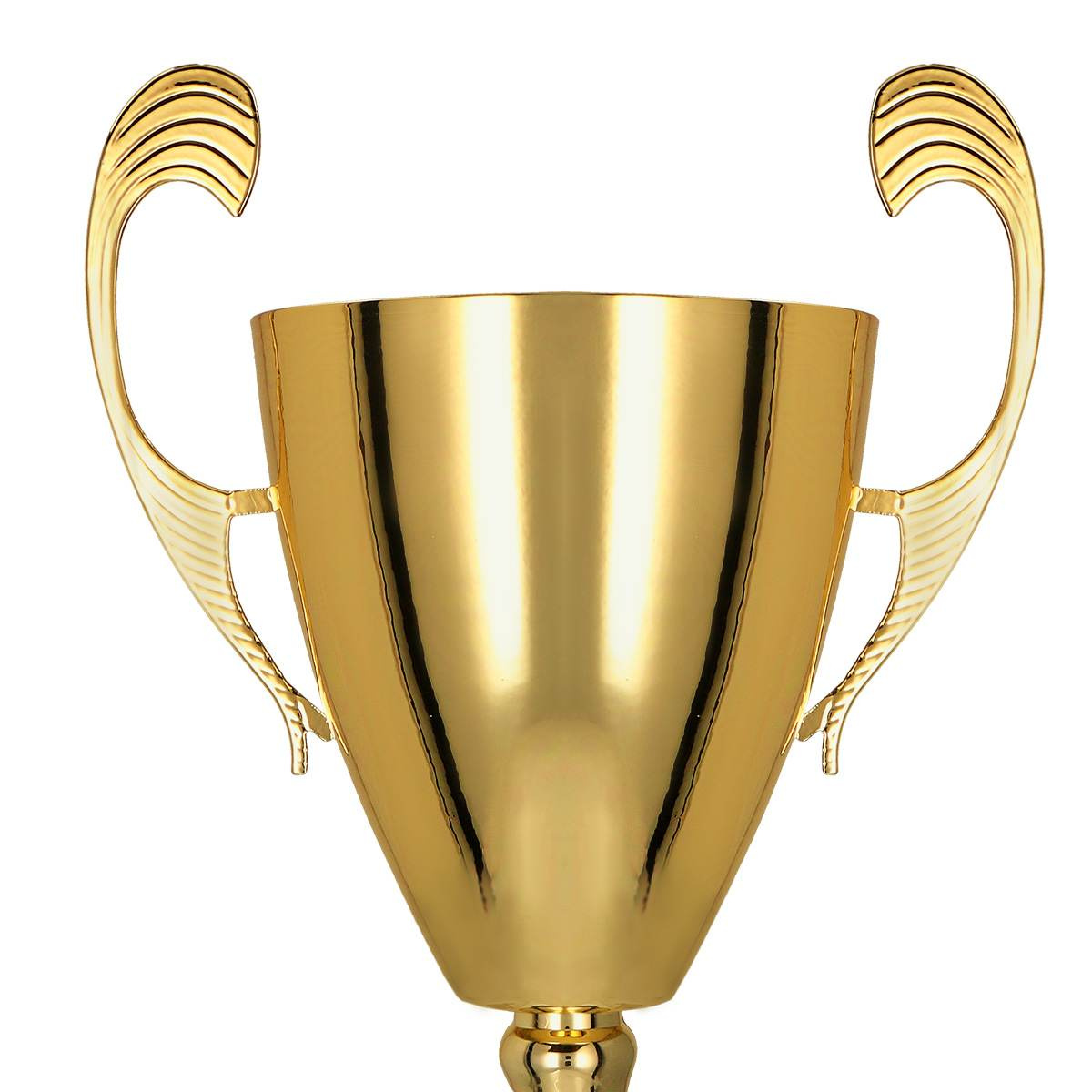 - Elegancki i wysoki puchar w złotym kolorze wykonany z metalu oraz tworzywa sztucznego. Sprawdzi się zarówno dla zwycięzcy jak i honorowego uczestnika wydarzenia.