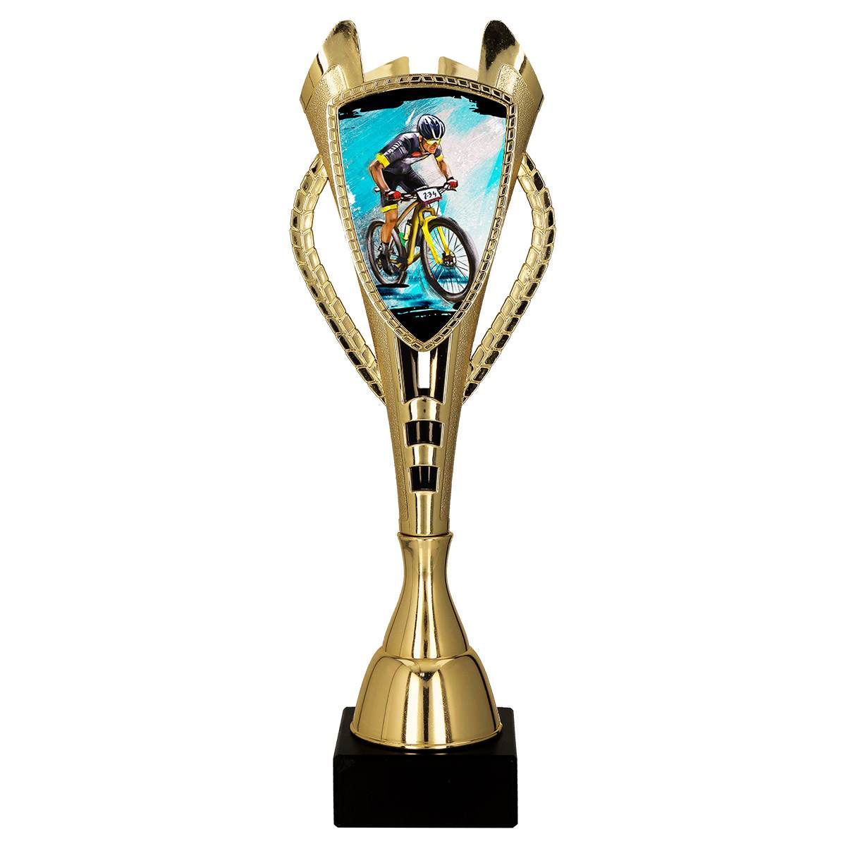 - Duży i okazały puchar dedykowany zawodom rowerowym. Wyokość 44 cm. Możliwe personalizowanie pucharu na tabliczce.