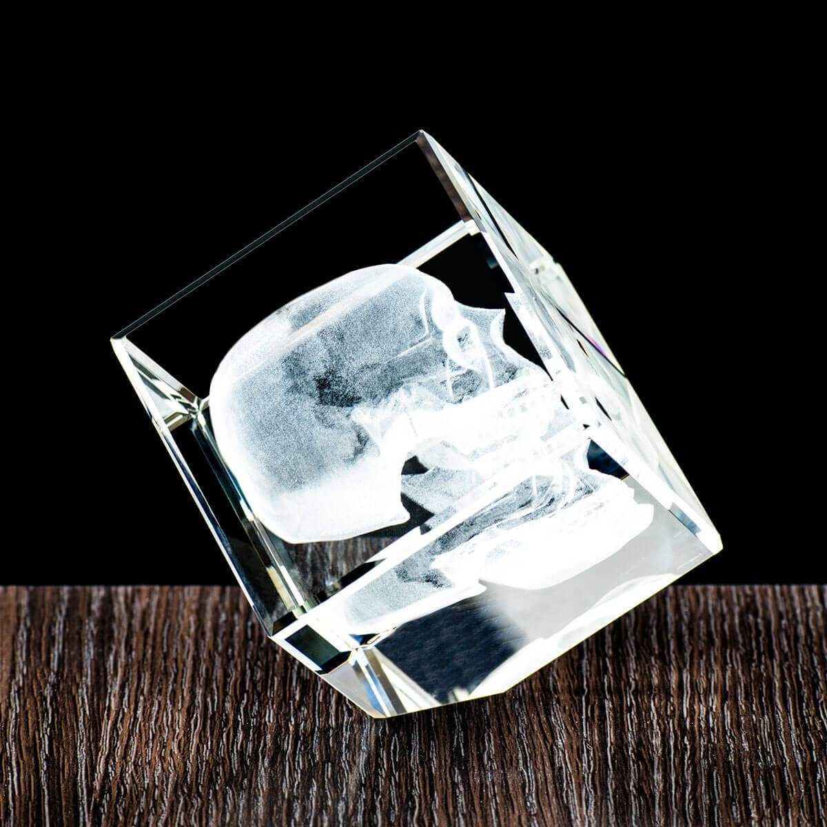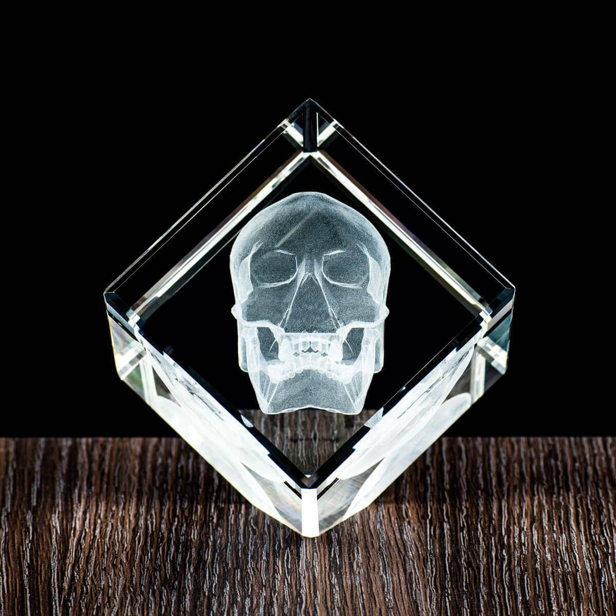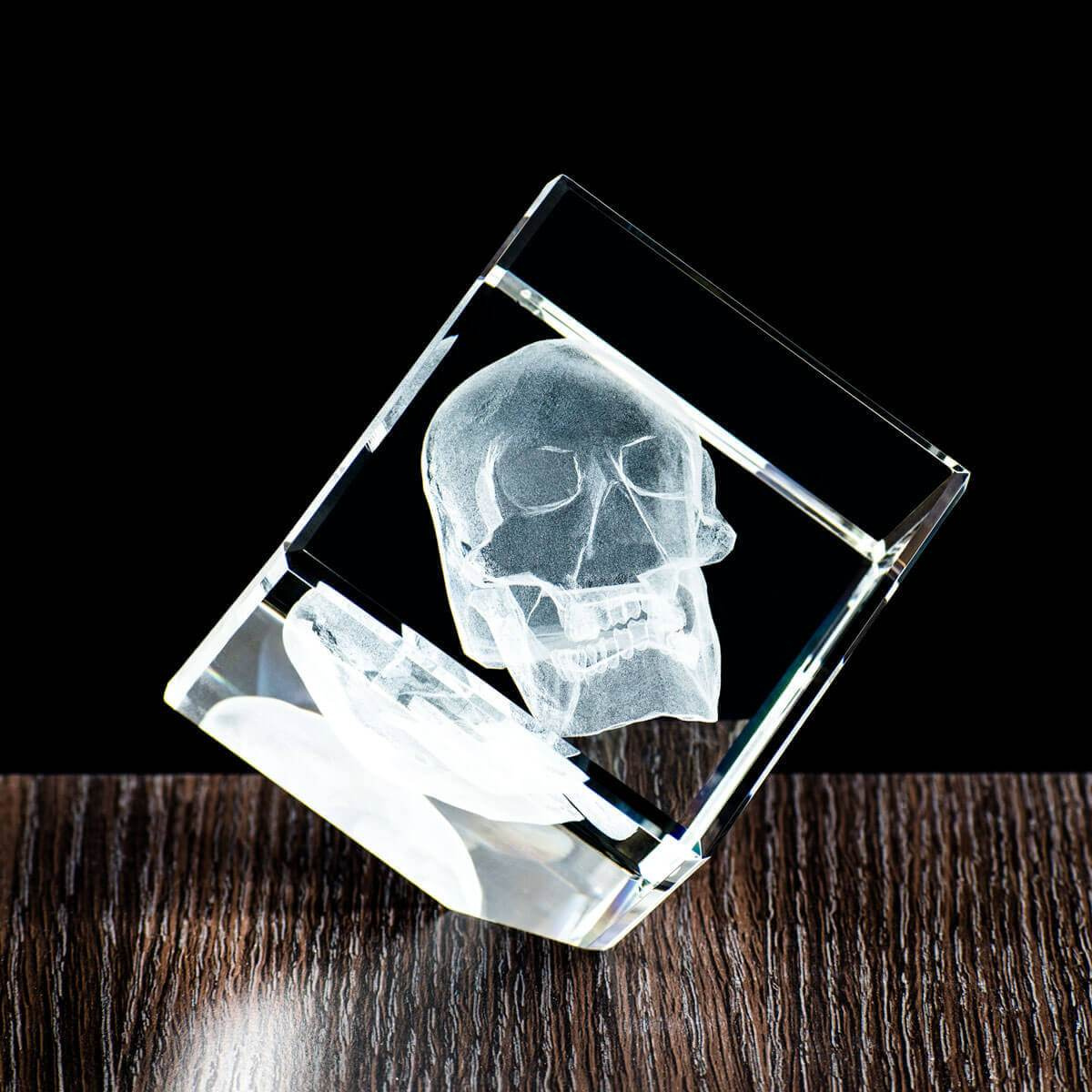 Trójwymiarowa (3D) Czaszka wygrawerowana w krysztale. Prezent dla Chłopaka