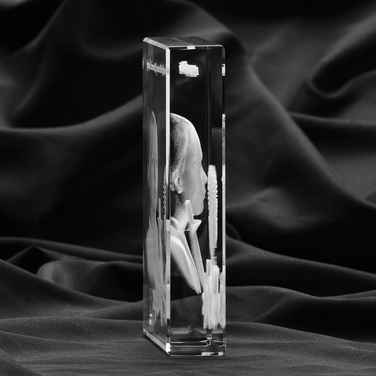 Wyjątkowa Pamiątka I Komunii Świętej w formie eleganckiej kryształowej statuetki z trójwymiarowym grawerem zdjęcia dziecka. Wystarczy przesłać do nas fotografię oraz wybrać odpowiedni kryształ, a my przygotujemy spersonalizowany projekt 3D i umieścimy go wewnątrz szkła nowoczesną technologią laserową.