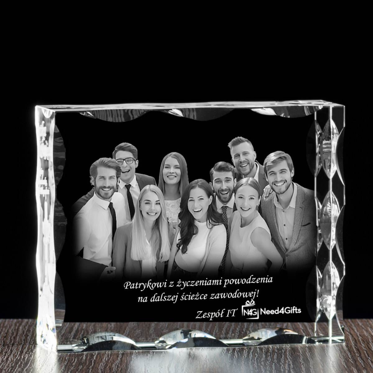 - Fotokryształ jako upominek dla kolegi z pracy z okazji awansu, zakończenia pracy, projektu bądź współpracy. Wystarczy tylko przesłać nam zdjęcie oraz tekst.