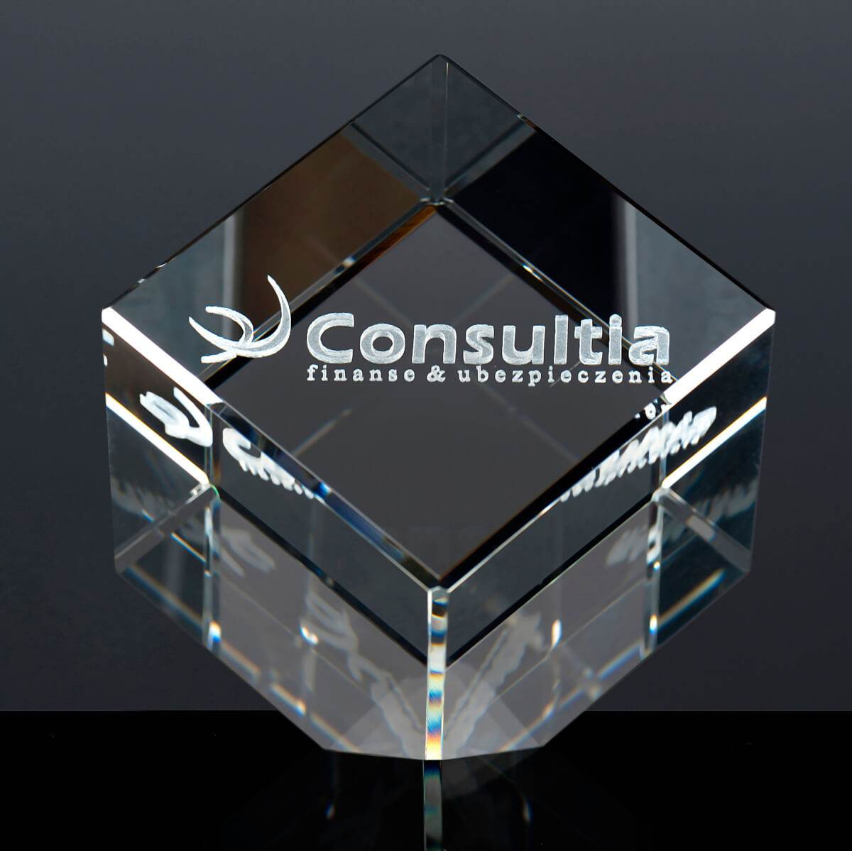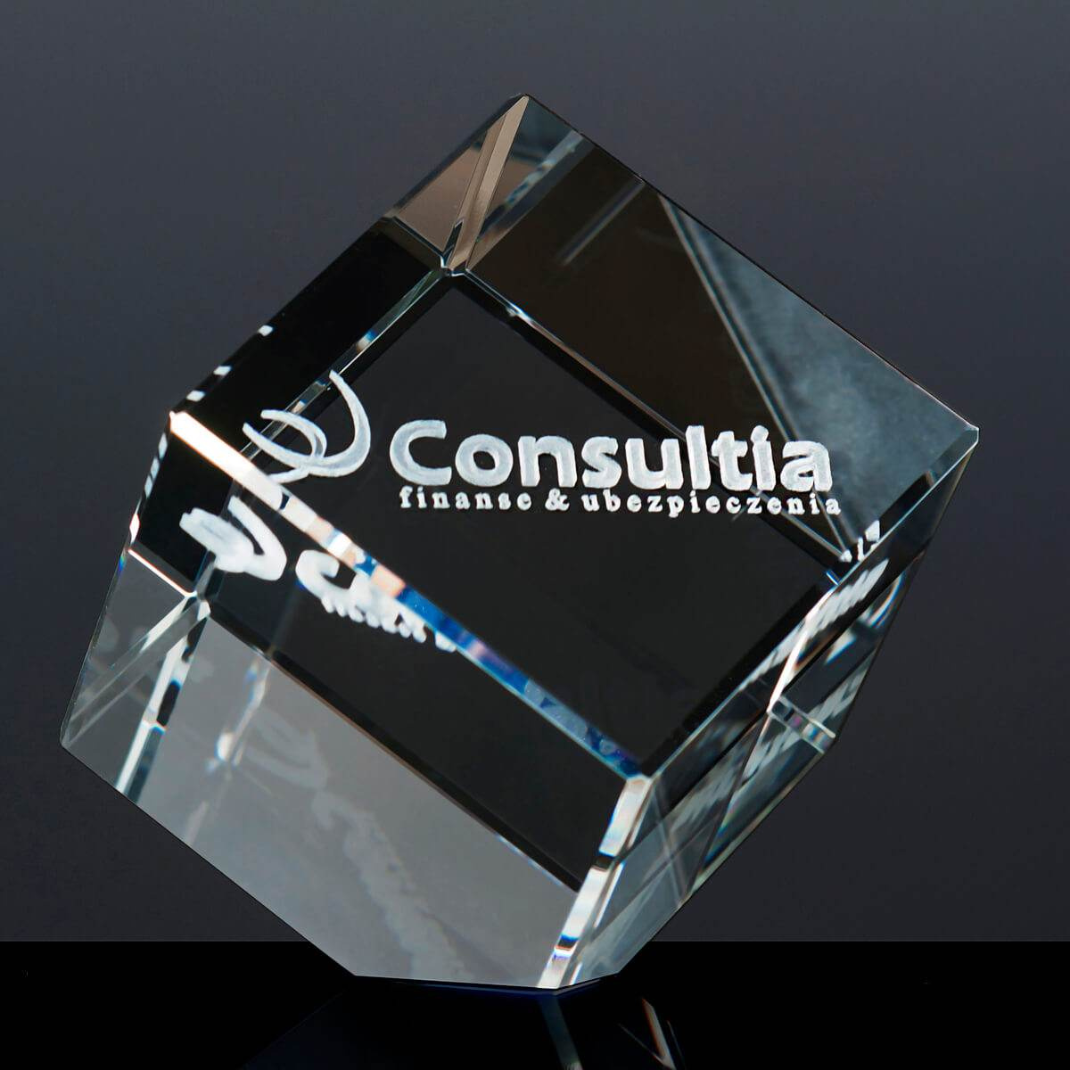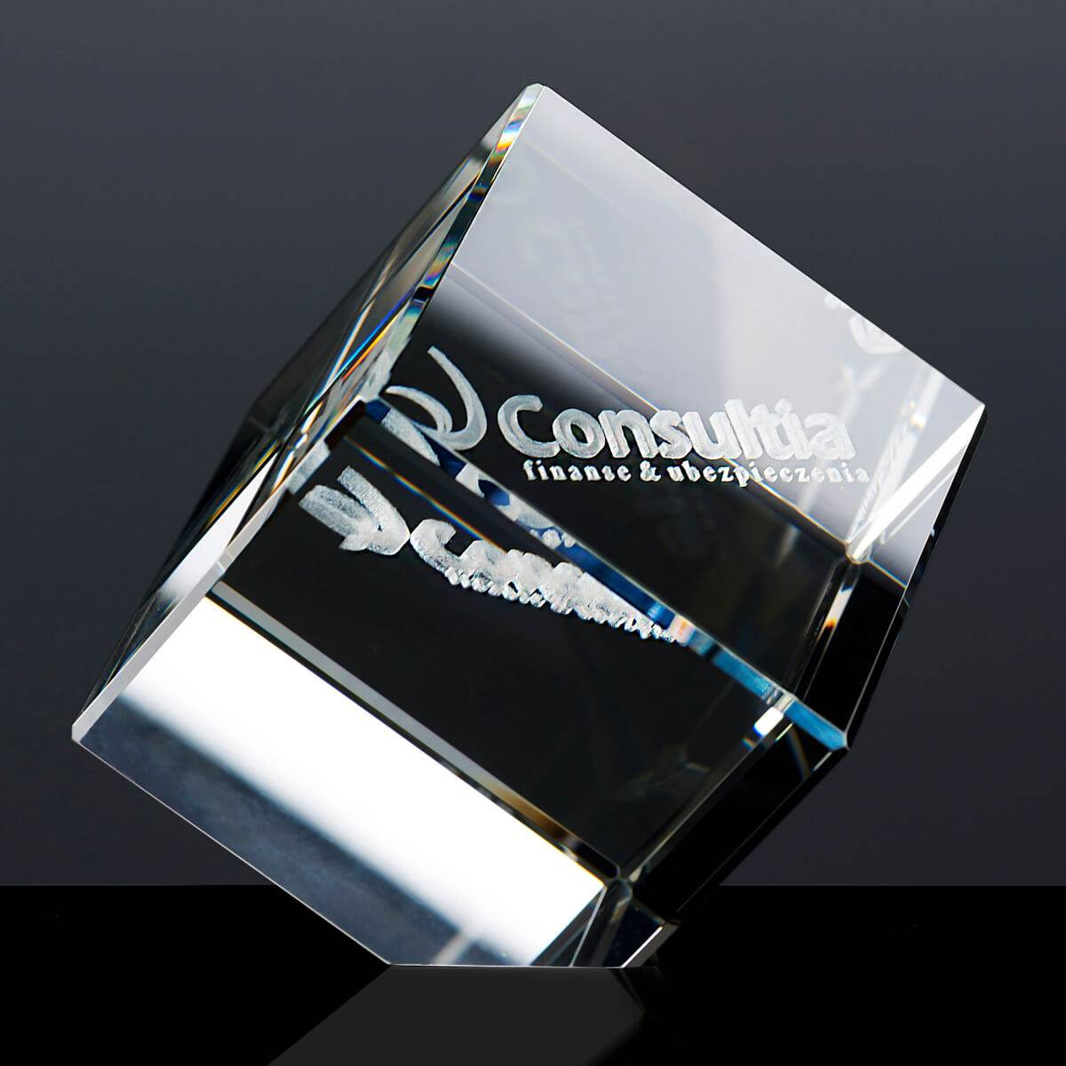 Kryształ o nietuzinkowym, eleganckim kształcie. Prezentowana statuetka 3D to pomysł na oryginalny upominek dla partnerów biznesowych z okazji jubileuszu firmy. Statuetka pakowana w eleganckie etui.