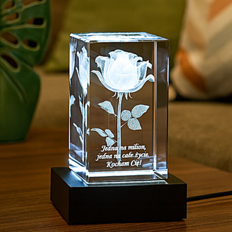 Kryształ z różą 3D na podstawce LED – wyjątkowy, personalizowany prezent