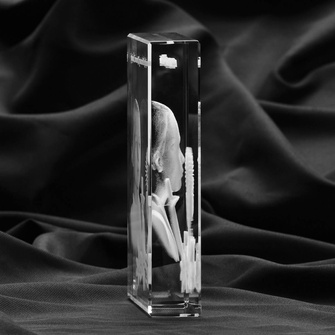 Popiersie 3D wygrawerowane w kryształowej statuetce. Etui w komplecie