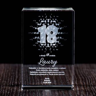 Prezent na osiemnaste urodziny - grawer w szkle. Statuetka kryształowa w etui